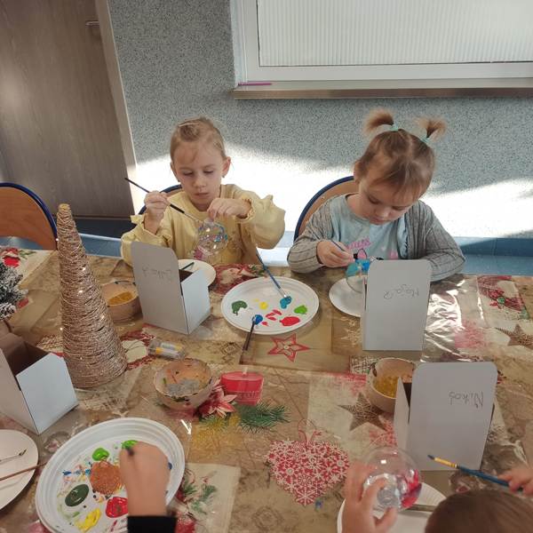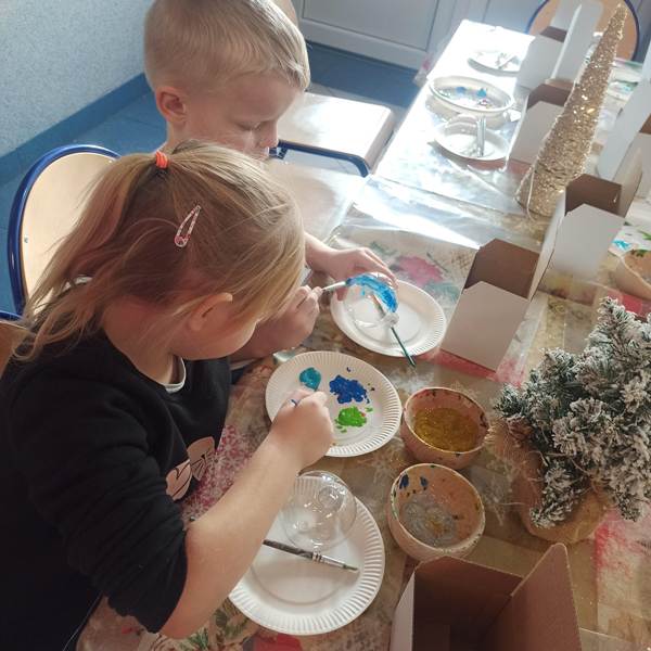 30 listopada grupy przedszkolne oraz klasy I-III uczestniczyły w przedświątecznych warsztatach zdobienia bombek choinkowych prowadzonych przez Pracownię Twórczego Rozwoju i Edukacji – Kwitnące Umysły. Uczestnicy mogli wysłuchać historii powstania bombek, zobaczyć bombki o nietypowych kształtach wykonane ze słomy, drewna, kamienia oraz w przedświątecznej, radosnej i ciepłej atmosferze samodzielnie ozdobić akrylową lub szklaną bombkę choinkową rozwijając w ten sposób kreatywność, twórcze myślenie oraz poczucie odpowiedzialności. Wykonane unikatowe i oryginalne bombki będą ozdobą świątecznej choinki.
