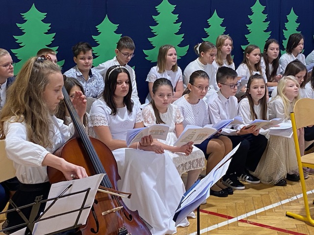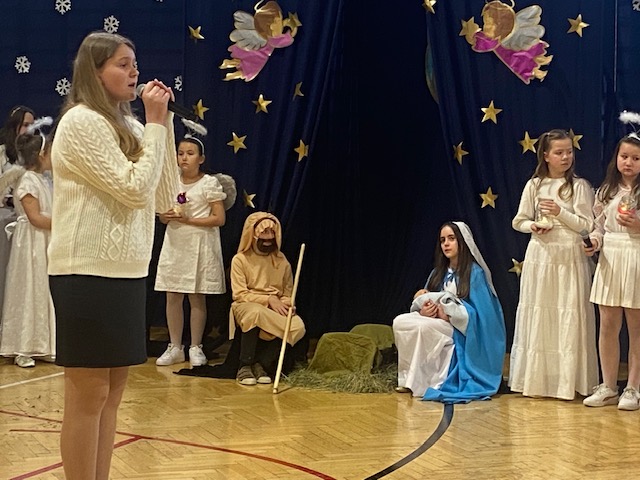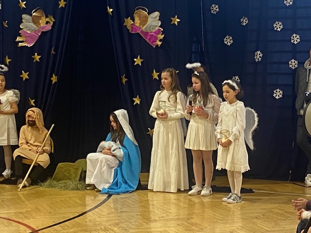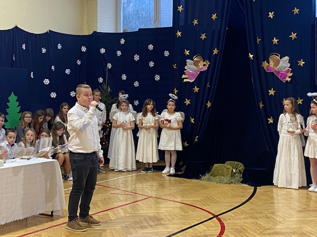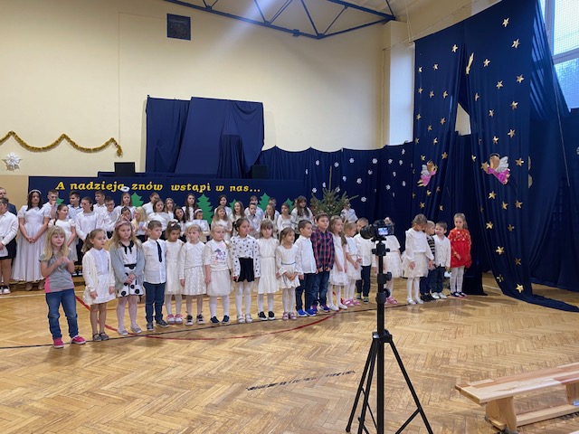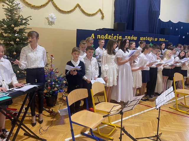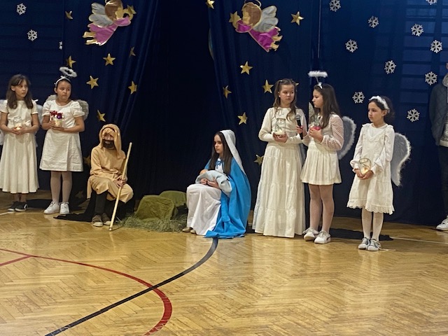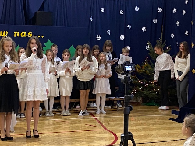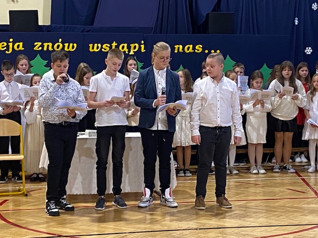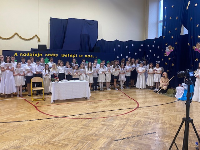 20 grudnia w naszej szkole odbyła się WIGILIA SZKOLNA. Pani dyrektor Agnieszka Staszewska powitała całą społeczność szkolną, która zebrała się w sali gimnastycznej, aby obejrzeć JASEŁKA w wykonaniu uczniów klasy III i VIIa pod kierunkiem katechetki pani Jolanty Niewczas. Po raz kolejny mogliśmy przeżyć historię Marii i Józefa, odkryć na nowo wydarzenia, które miały miejsce ponad dwa tysiące lat temu. Artyści wprowadzili nas w świąteczny nastrój, salę zaś zdobiła piękna dekoracja przygotowana pod kierunkiem pani Agnieszki Szkopińskiej - Wójcik. Chór szkolny prowadzony przez panią Dominikę Sobczyńską cudownie zaśpiewał pastorałki i kolędy. Nie zabrakło również życzeń świątecznych od przybyłych gości: Wójta Gminy Kowiesy Jarosława Pepki i ks. proboszcza Krzysztofa Majchera. Po skończonej części artystycznej wszyscy zasiedliśmy do wigilijnego stołu.