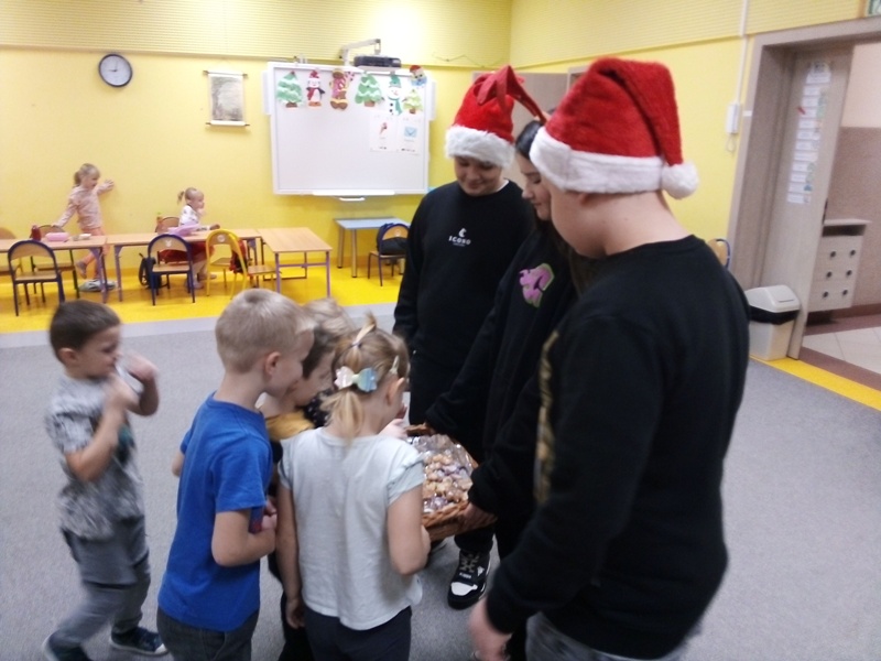 p. Agaty Popławskiej i p. Kamili Szczechowicz. Sam „Kiermasz Pierników” przerósł nasze najśmielsze oczekiwania- słodkości rozeszły się w błyskawicznym tempie, w ciągu zaledwie jednej przerwyJ. Wolontariusze nie zapomnieli także o swoich najmłodszych kolegach i koleżankach z oddziałów przedszkolnych, ich także odwiedzili tego dnia, by poczęstować swoimi wypiekami. Pieniądze zebrane ze sprzedaży pierników w wysokości 371 złzostaną przeznaczone na Wielką Orkiestrę Świątecznej Pomocy. Serdecznie dziękujemy wszystkim za niesamowite zaangażowanie w przebieg całej akcji.