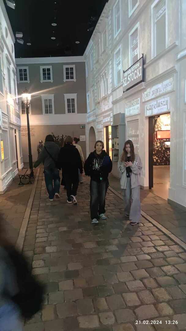 Kolejnym punktem programu było Muzeum Historii Żydów Polskich Polin. Tu odbyliśmy spacer po wystawie stałej „1000 lat historii Żydów polskich. Podczas spaceru dowiedzieliśmy się o życiu codziennym Żydów w dawnej Polsce oraz ich obyczajach i religii.