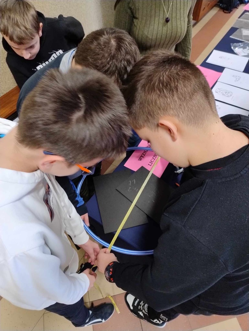 14 marca w naszej szkole świętowaliśmy Dzień Liczby Pi. Z tej okazji na przerwach dzieci oglądały prezentację multimedialną z magiczną liczbą w roli głównej, rozwiązywały rebusy matematyczne, układały puzzle oraz wyznaczały liczbę pi. Uczniowie klas IV- VIII zmierzyli się ze sobą w konkursie polegającym na zapamiętaniu i wypisaniu jak największej ilości cyfr po przecinku w rozwinięciu dziesiętnym liczby π. Najlepsi z każdej klasy otrzymali złote i srebrne bilet.