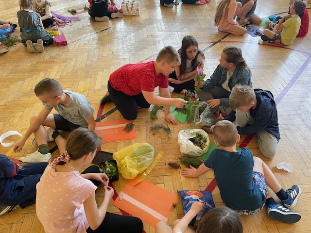 wykonanie z przyniesionych, znalezionych materiałów „Obrazu Ziemi”