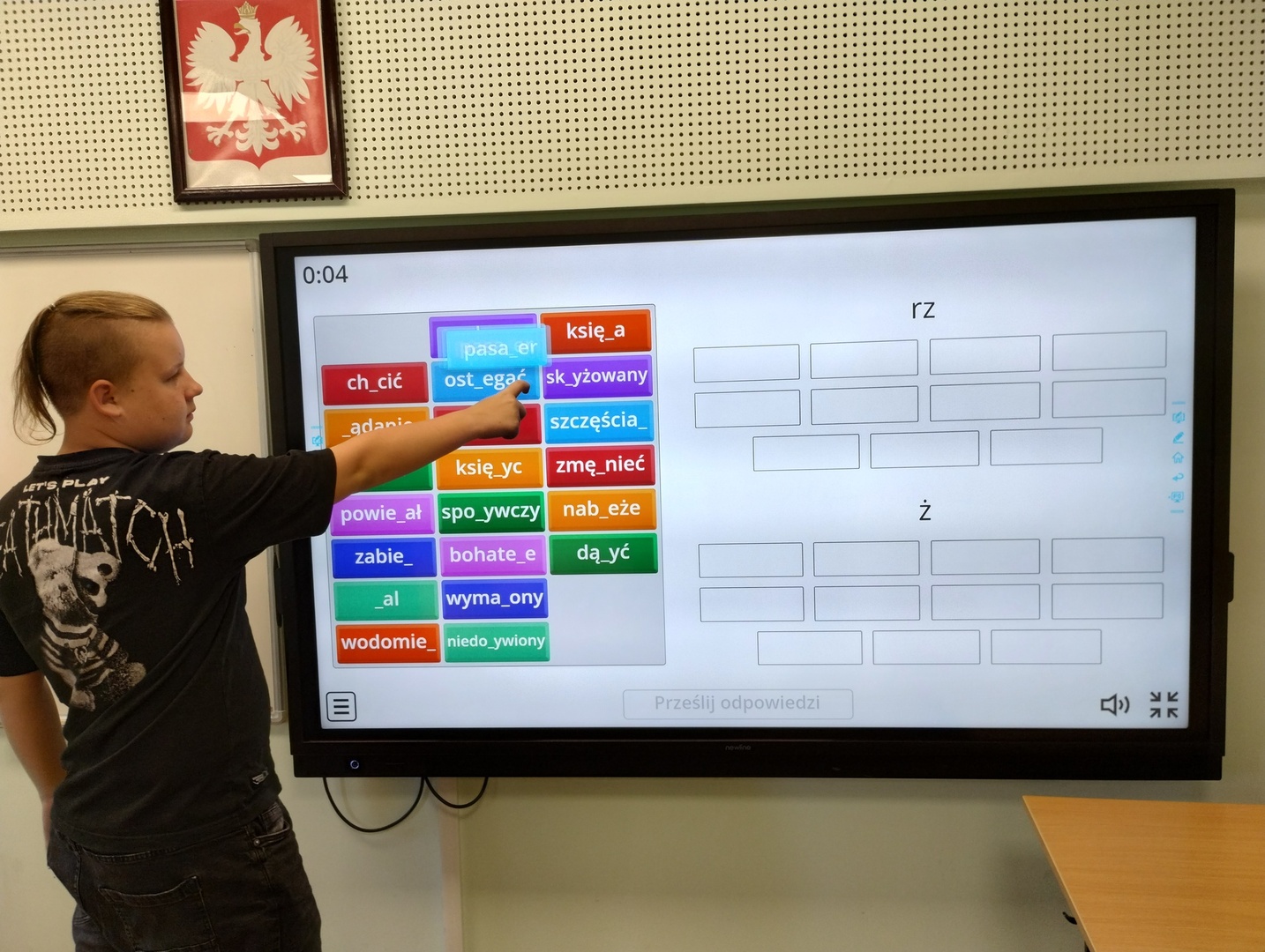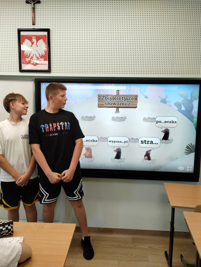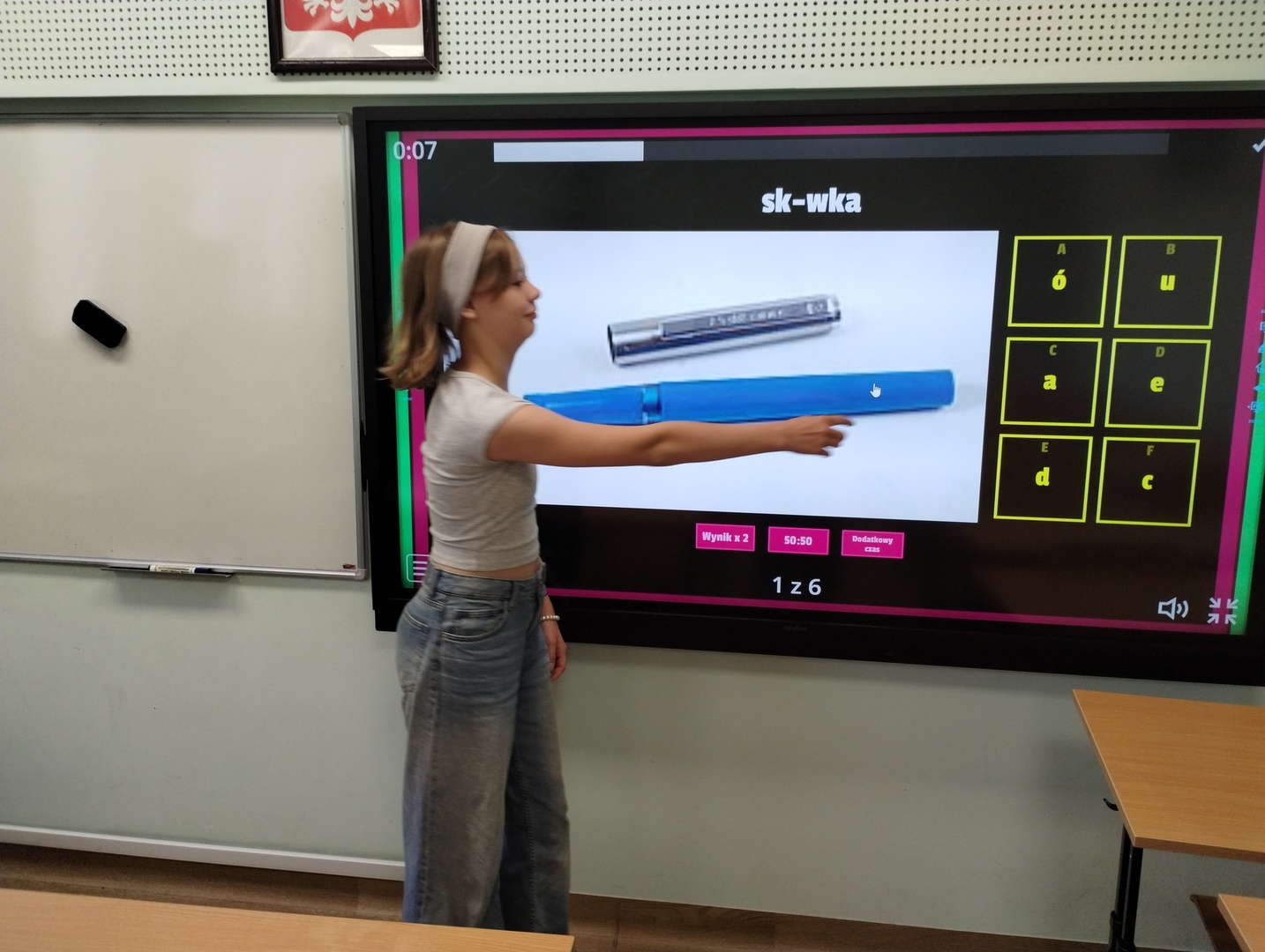 Od października 2023 roku do kwietnia 2024 roku uczniowie klasy IV i VI pod kierunkiem nauczycielek języka polskiego: p. Anny Wylezińskiej i p. Kamili Szczechowicz uczestniczyli w innowacji metodycznej pt. „I TY MOŻESZ ZOSTAĆ MISTRZEM ORTOGRAFII”. Zajęcia innowacyjne odbywały się w ramach zajęć rozwijających umiejętności polonistyczne, raz w tygodniu. Innowacja była naszą odpowiedzią na uwydatniające się coraz częściej kłopoty z ortografią u naszych uczniów, co potwierdzały analizy ich pisemnych prac, sprawdzianów czy dyktand. Innowacja pedagogiczna „I TY MOŻESZ ZOSTAC MISTRZEM ORTOGRAFII” została opracowana w celu nabycia przez uczniów umiejętności poprawnego zapisu treści pod względem ortograficznym ze świadomym wykorzystywaniem zasad pisowni. Dzieci chętnie uczestniczyły w zajęciach, brały w nich aktywny udział, frekwencja była bardzo wysoka. Wykazywały się twórczą postawą, dociekliwością i wytrwałością potrzebną do osiągnięcia celu. Zadaniem prowadzonych zajęć było również wspomaganie ucznióww rozpoznaniu ich własnych uzdolnień i zainteresowań oraz stanowienie alternatywnej możliwości spędzenia czasu wolnego. W trakcie zajęć uczniowie m.in.: korzystali z gier online, tablicy interaktywnej, rozwiązywali krzyżówki, łamigłówki, rebusy, zagadki, tworzyli własne wierszyki ułatwiające zapamiętanie reguł ortograficznych oraz stali się twórcami planszowych gier ortograficznych takich jak : memory, 5 sekund, monoply itp. Nauka połączona z zabawą wpłynęła niewątpliwie na atrakcyjność zajęć, a tym samym przyczyniła się do wzrostu zainteresowania ortografią. Jednoznacznie możemy stwierdzić, że zastosowanie nieszablonowych metodach nauczania z wykorzystaniem pedagogiki zabawy i grywalizacji, w tym głównie zastosowania narzędzi TIK wpłynęło pozytywnie na uatrakcyjnienie przebiegu zajęć.