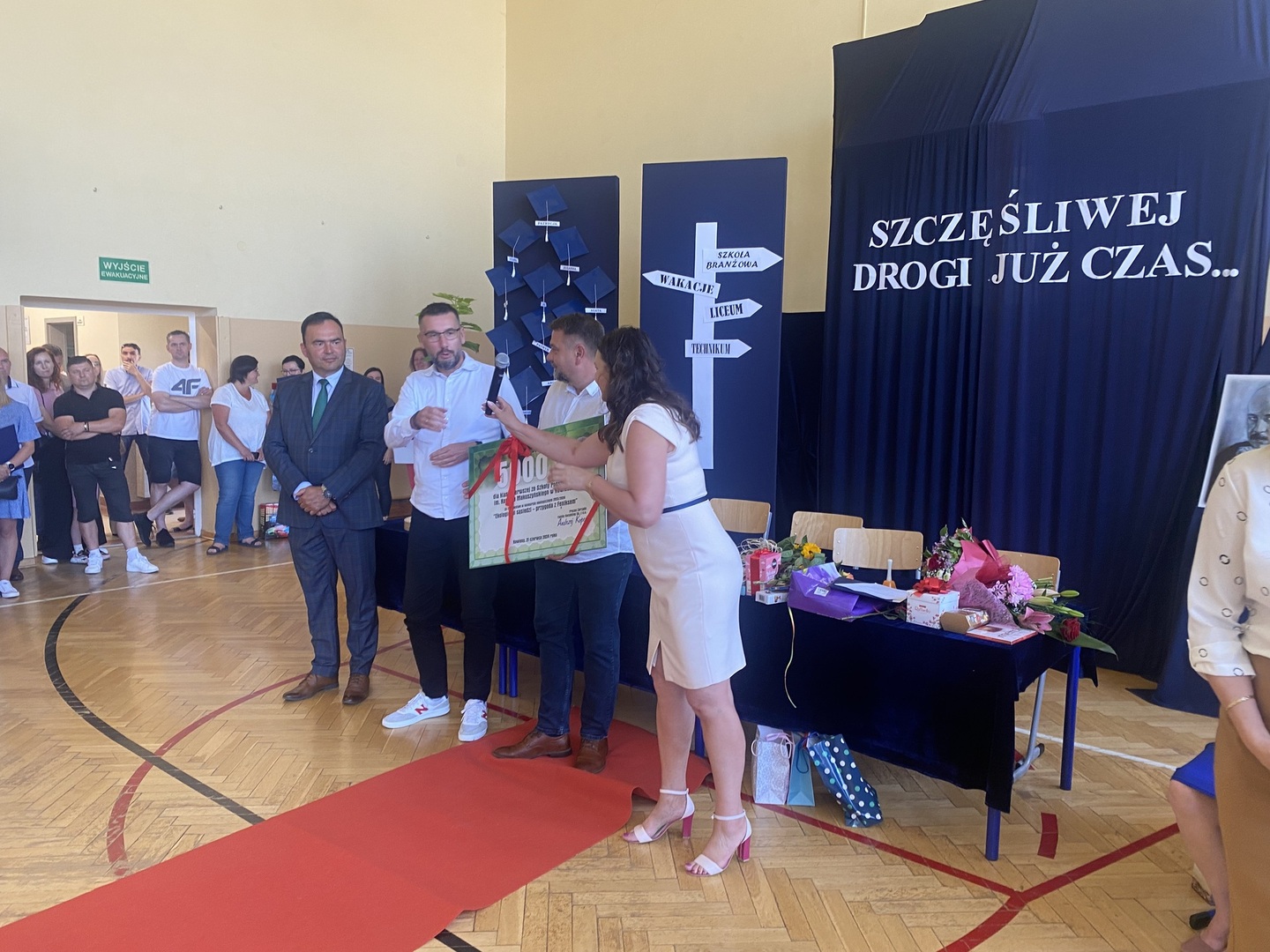 Nagroda w formie czeku została uczniom klasy 1 wręczona 21.06.2024r. na uroczystym zakończeniu roku szkolnego 2023/2024.