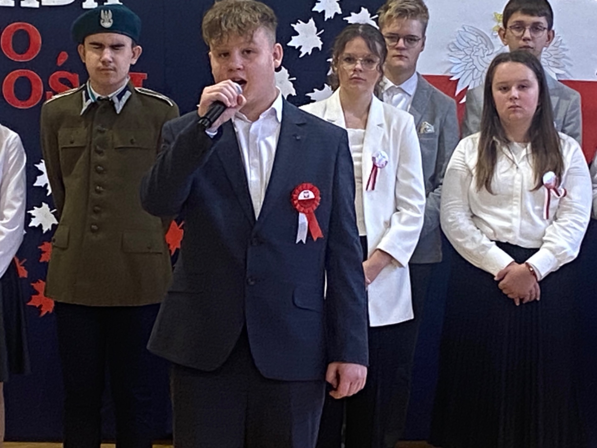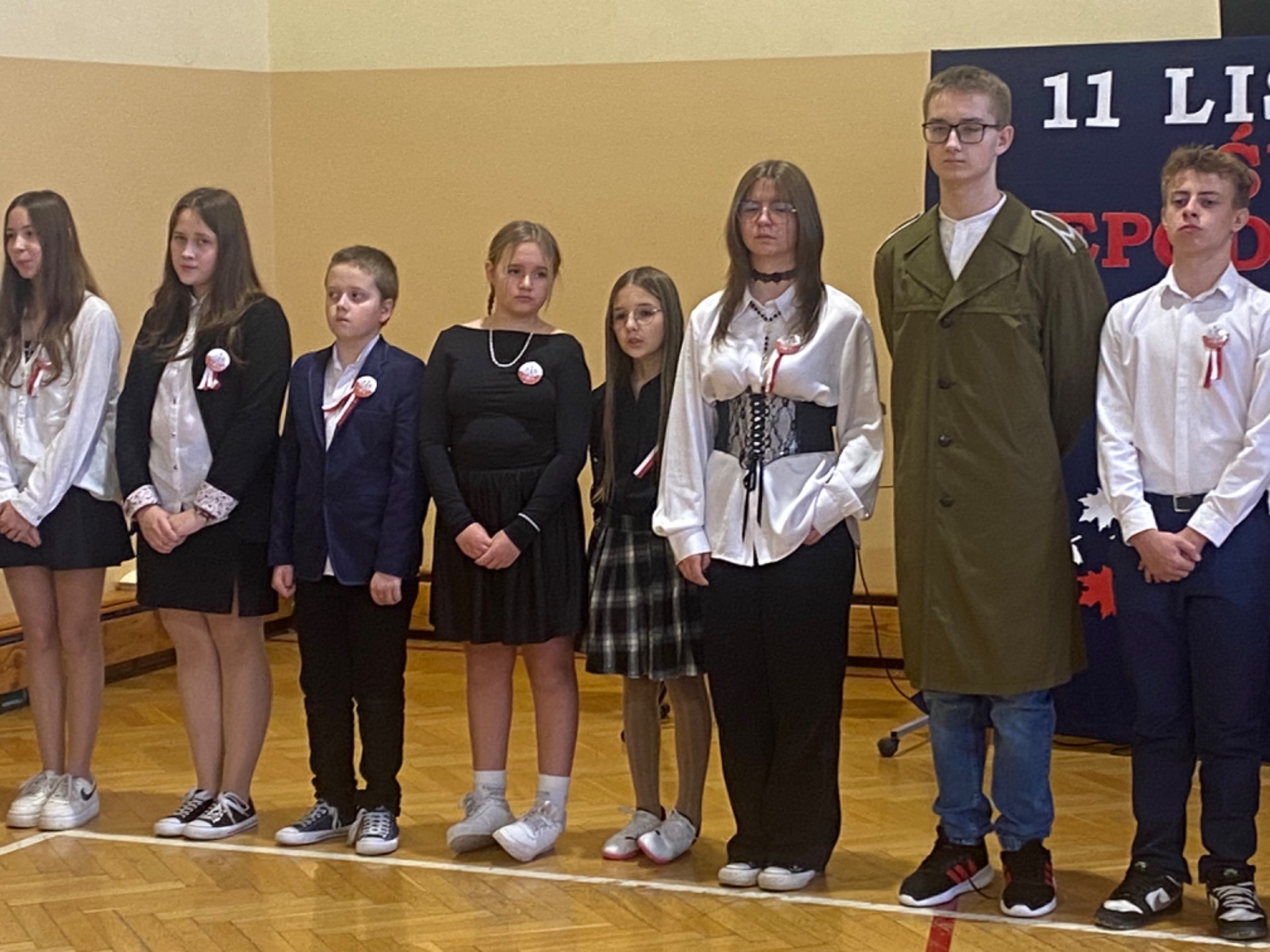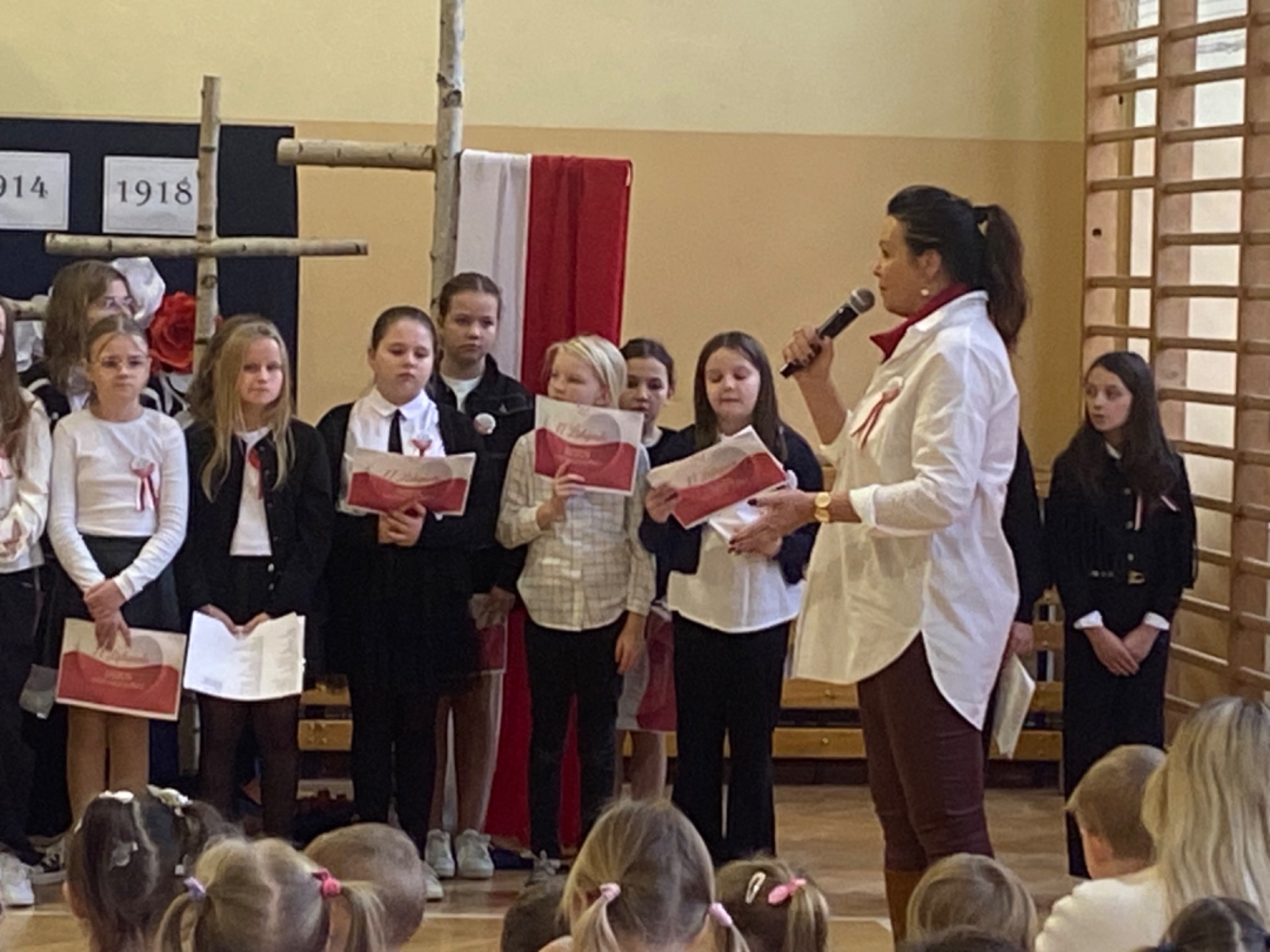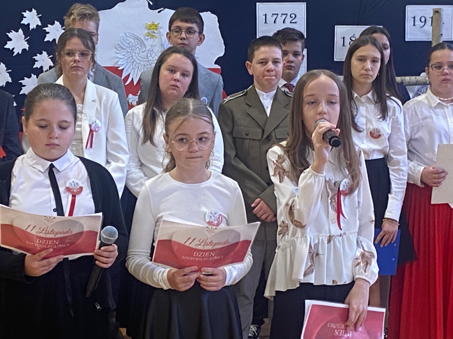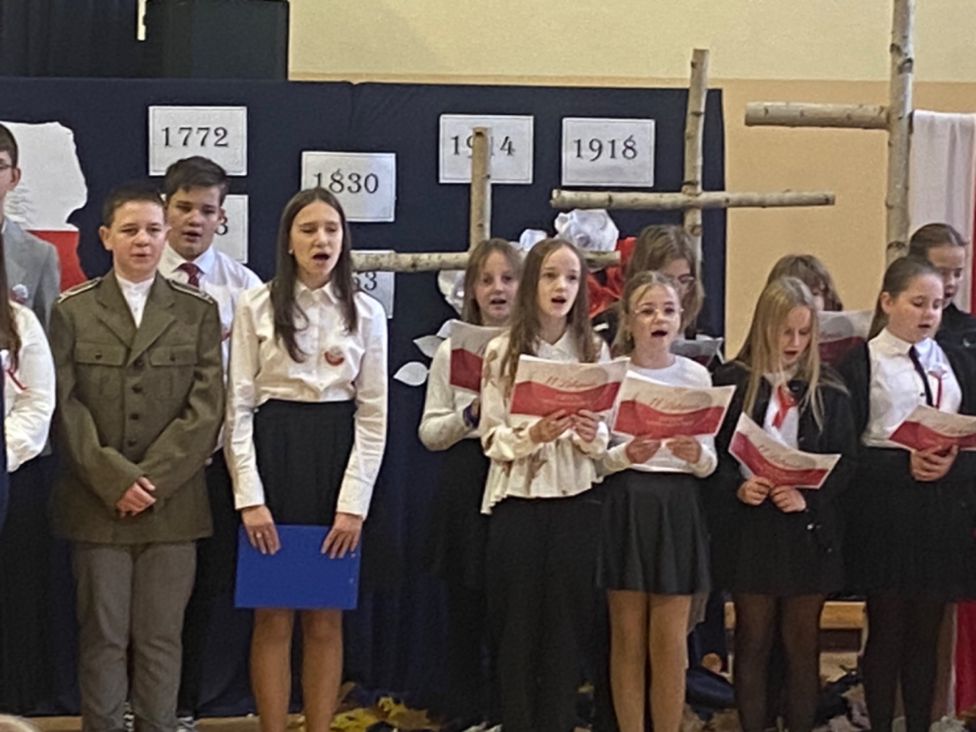 Z okazji 106 rocznicy Odzyskania przez Polskę Niepodległości w naszej szkole odbyła się uroczysta akademia, podczas której została przypomniana trudna droga Polaków do Odzyskania Niepodległości. 11 listopada 1918 roku po 123 latach zaborów Polska odzyskała upragnioną Niepodległość. Podczas apelu został odśpiewany uroczyście przez całą społeczność szkolną "Mazurek Dąbrowskiego", nasza szkoła przystąpiła do kolejnej edycji akcji Ministerstwa Edukacji Narodowej"Szkoła do hymnu". Uczniowie recytowali wiersze patriotyczne, chór szkolny śpiewał piękne pieśni patriotyczne. Inscenizacja słowno – muzyczna przedstawiająca losy naszej ojczyzny w drodze do Odzyskania Niepodległości została wystawiona w kościele w Chojnacie podczas niedzielnej Mszy Świętej.