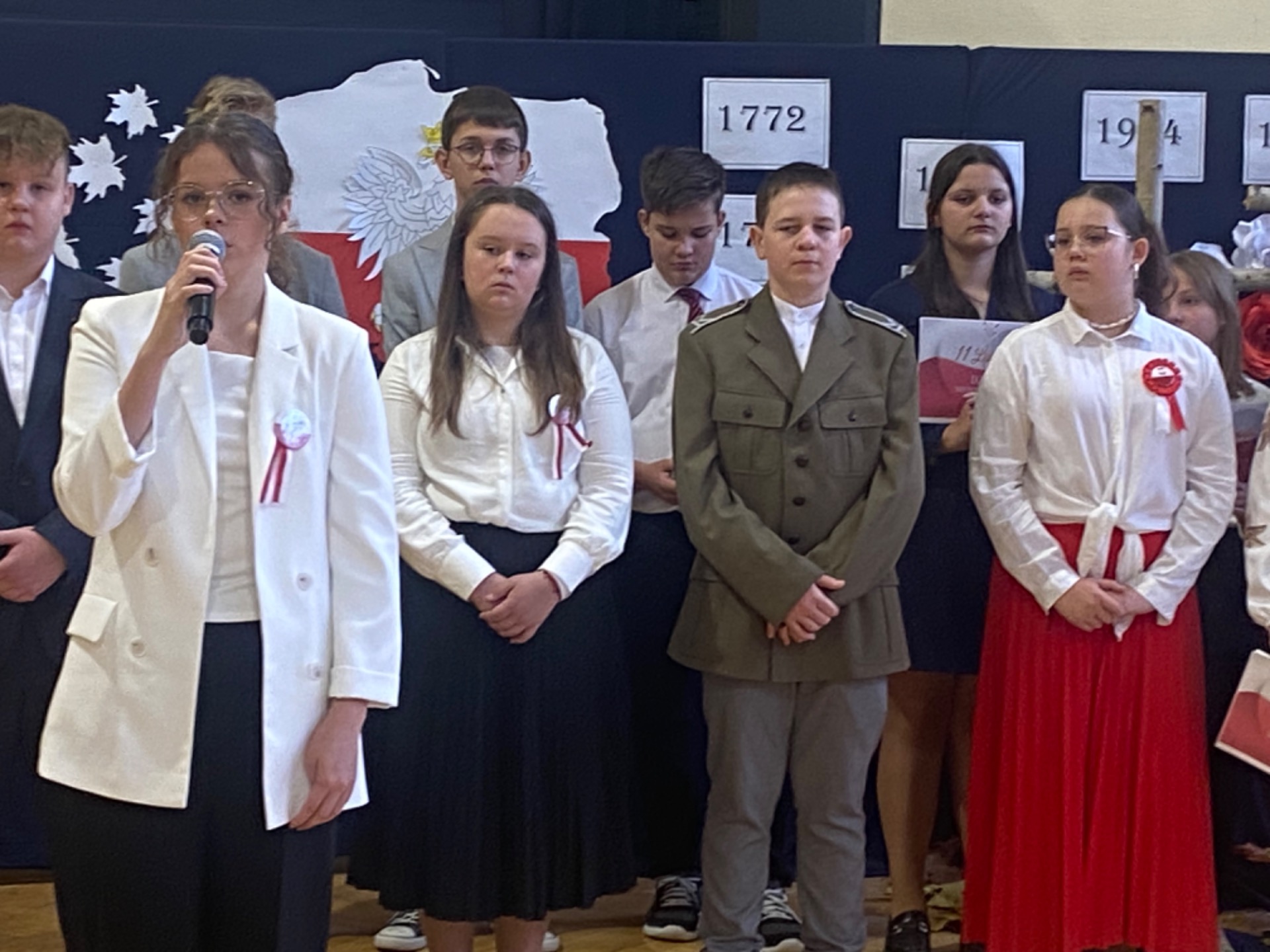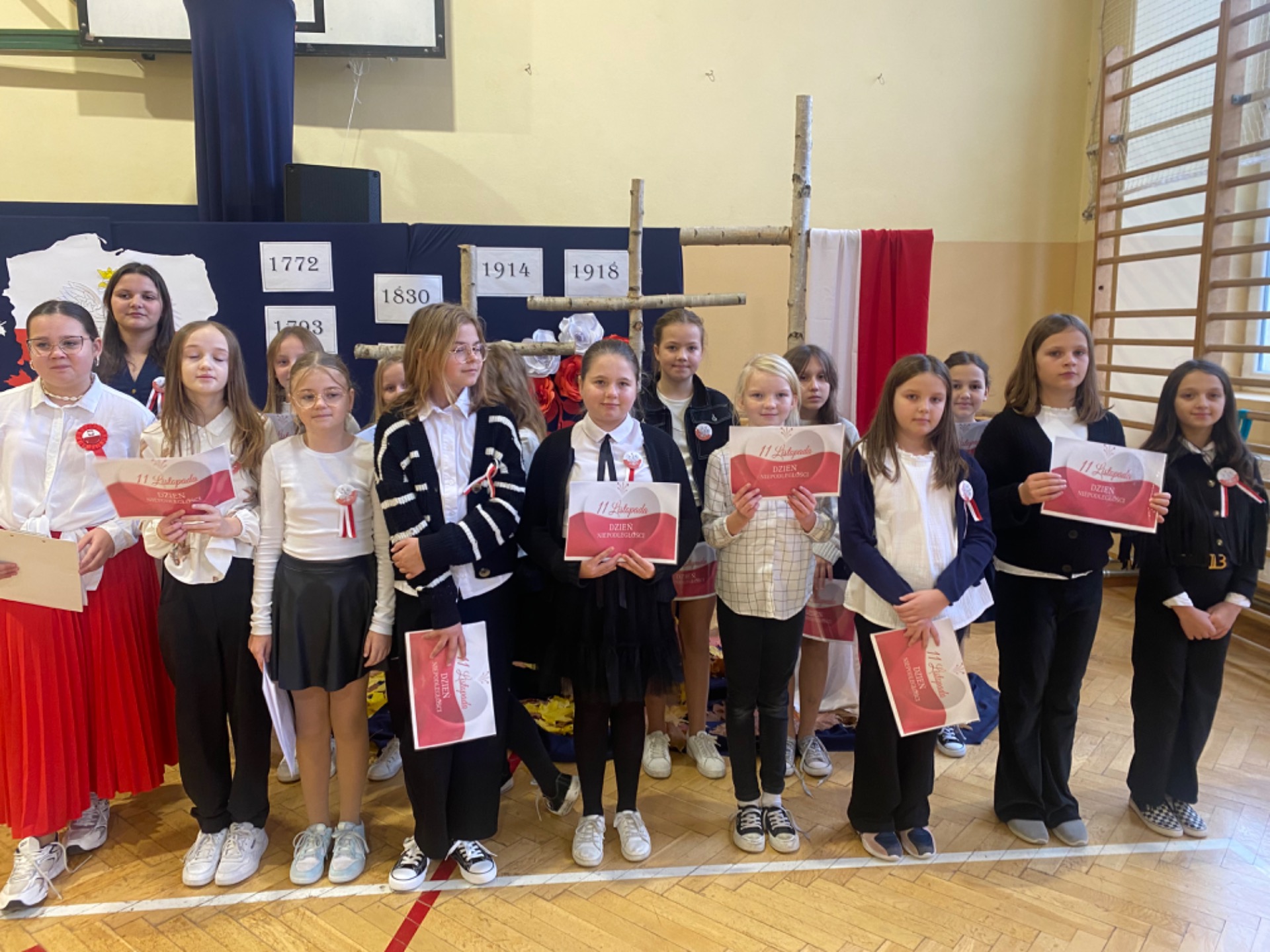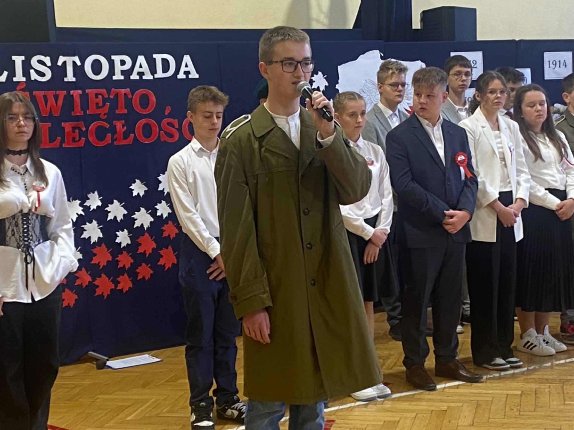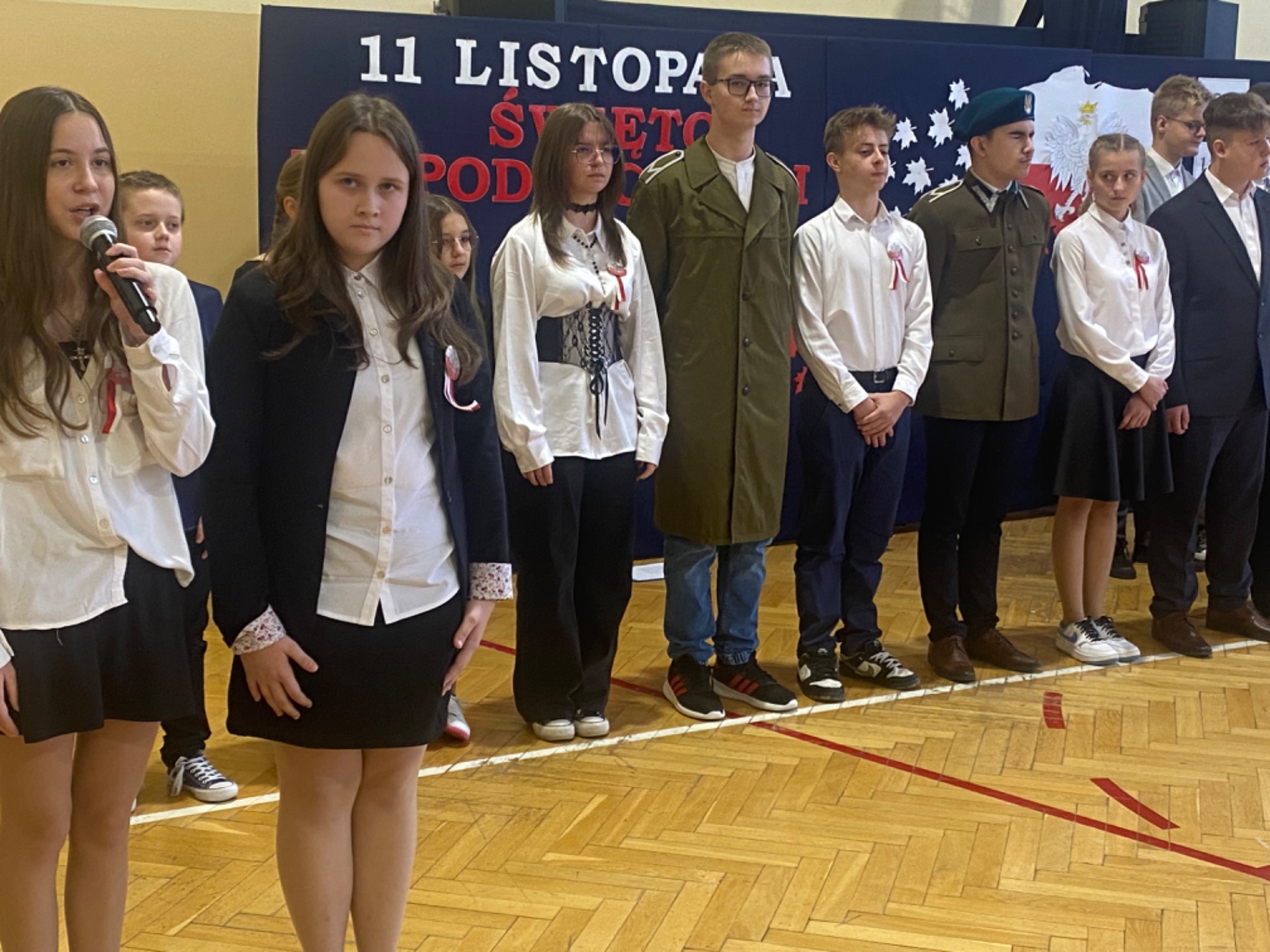 Z okazji 106 rocznicy Odzyskania przez Polskę Niepodległości w naszej szkole odbyła się uroczysta akademia, podczas której została przypomniana trudna droga Polaków do Odzyskania Niepodległości. 11 listopada 1918 roku po 123 latach zaborów Polska odzyskała upragnioną Niepodległość. Podczas apelu został odśpiewany uroczyście przez całą społeczność szkolną "Mazurek Dąbrowskiego", nasza szkoła przystąpiła do kolejnej edycji akcji Ministerstwa Edukacji Narodowej"Szkoła do hymnu". Uczniowie recytowali wiersze patriotyczne, chór szkolny śpiewał piękne pieśni patriotyczne. Inscenizacja słowno – muzyczna przedstawiająca losy naszej ojczyzny w drodze do Odzyskania Niepodległości została wystawiona w kościele w Chojnacie podczas niedzielnej Mszy Świętej.