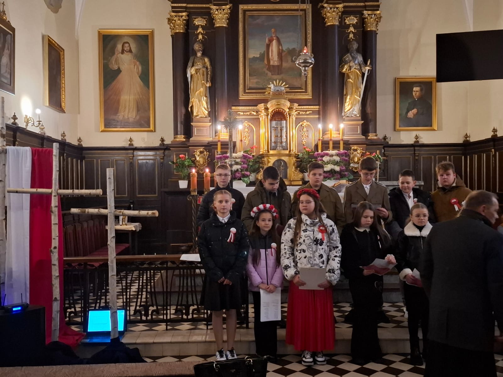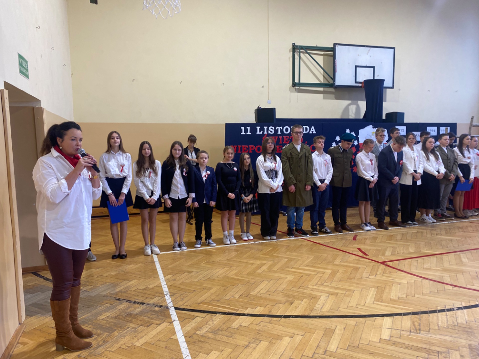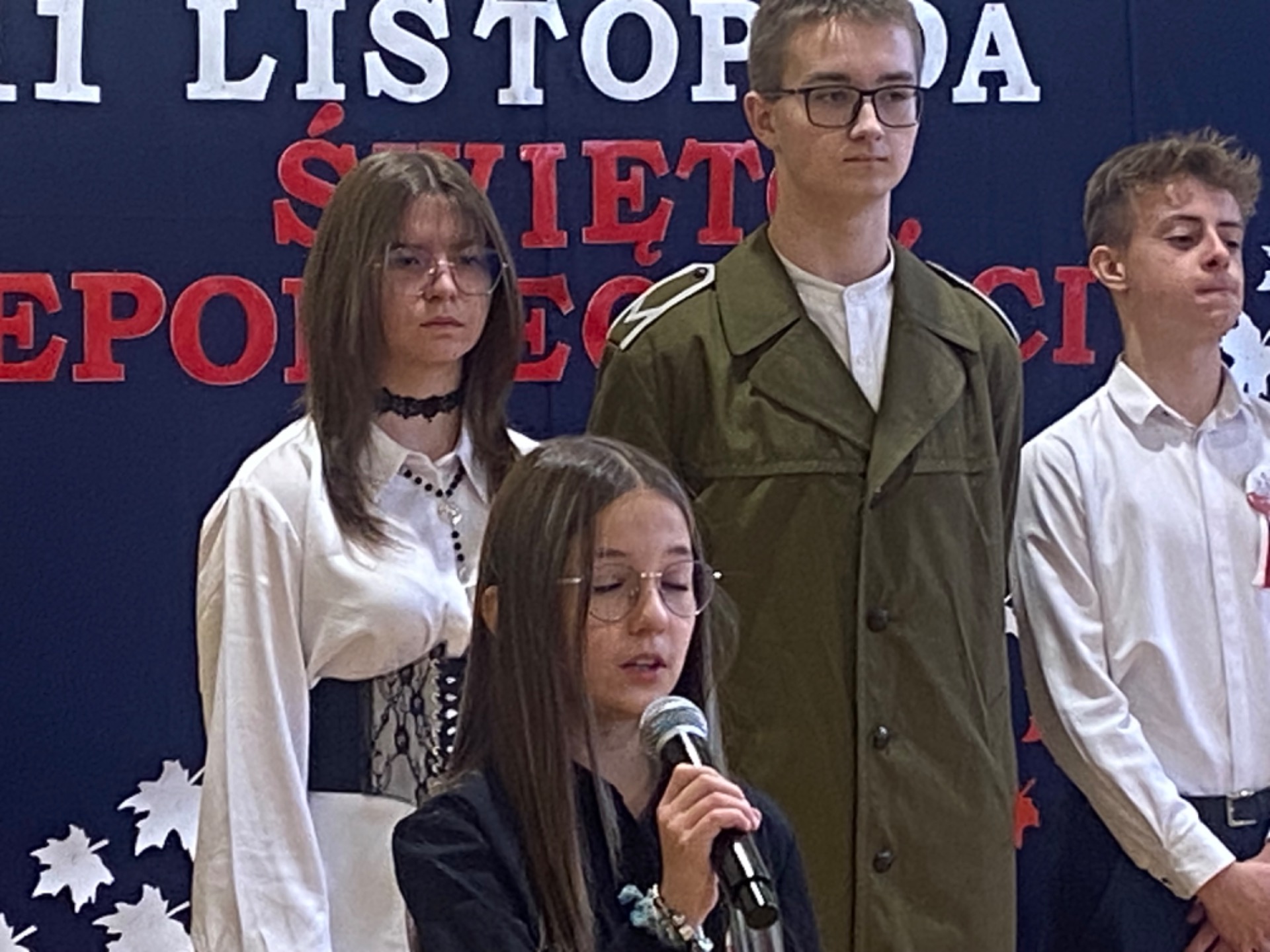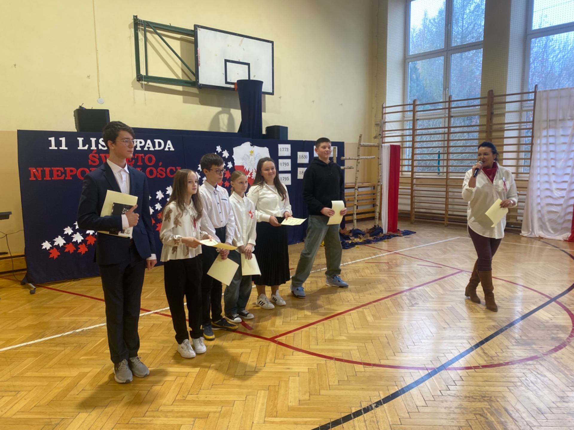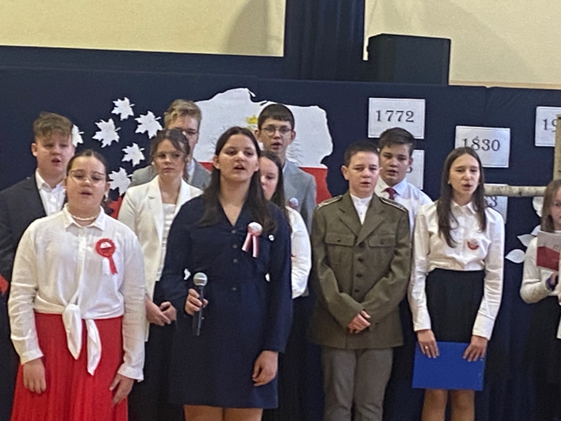 Z okazji 106 rocznicy Odzyskania przez Polskę Niepodległości w naszej szkole odbyła się uroczysta akademia, podczas której została przypomniana trudna droga Polaków do Odzyskania Niepodległości. 11 listopada 1918 roku po 123 latach zaborów Polska odzyskała upragnioną Niepodległość. Podczas apelu został odśpiewany uroczyście przez całą społeczność szkolną "Mazurek Dąbrowskiego", nasza szkoła przystąpiła do kolejnej edycji akcji Ministerstwa Edukacji Narodowej"Szkoła do hymnu". Uczniowie recytowali wiersze patriotyczne, chór szkolny śpiewał piękne pieśni patriotyczne. Inscenizacja słowno – muzyczna przedstawiająca losy naszej ojczyzny w drodze do Odzyskania Niepodległości została wystawiona w kościele w Chojnacie podczas niedzielnej Mszy Świętej.
