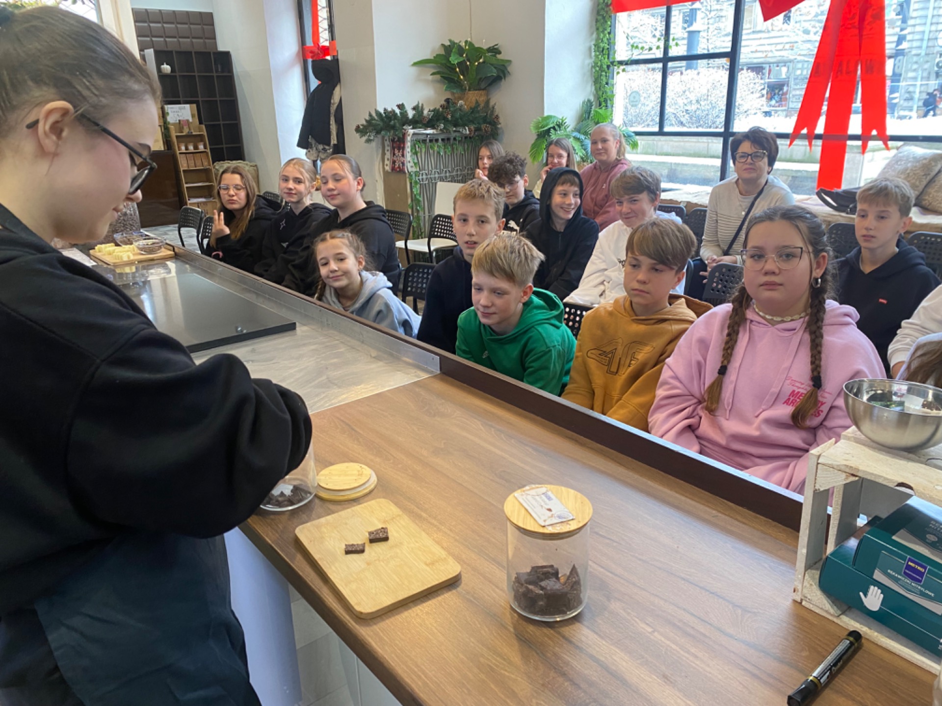 W piątek 22 listopada uczniowie klasy VIa i VIb wraz z wykładowcami wyjechali na wycieczkę do Warszawy. Pierwszym punktem była Manufaktura czekolady, gdzie uczniowie poznali cały proces powstawania czekolady od ziarenka. Następnie udali się do Domu zagadek, który okazał się świetnym miejscem logicznego myślenia i współpracy w grupie. Nie zabrakło również wspólnego posiłku w Złotych Tarasach.
