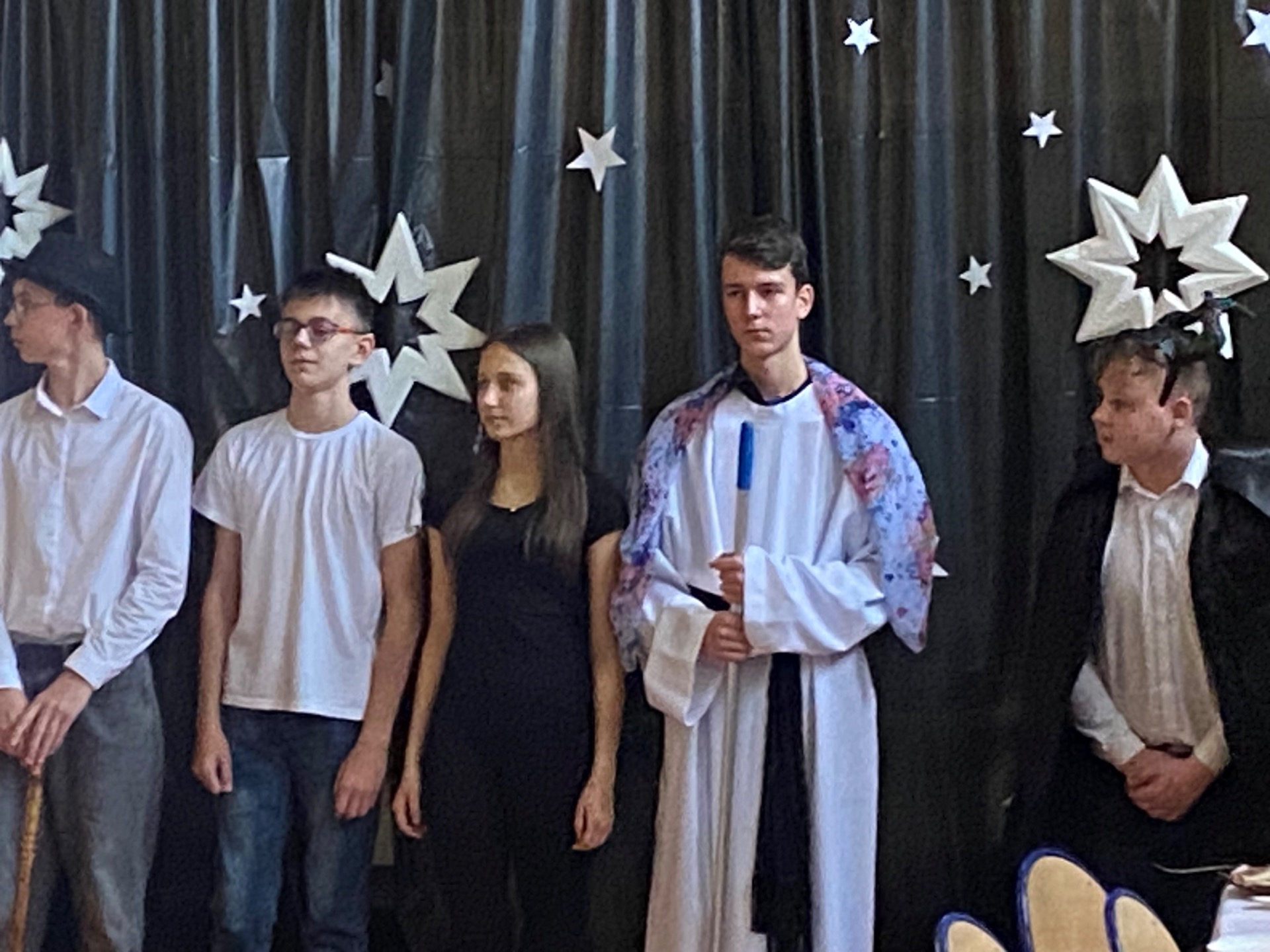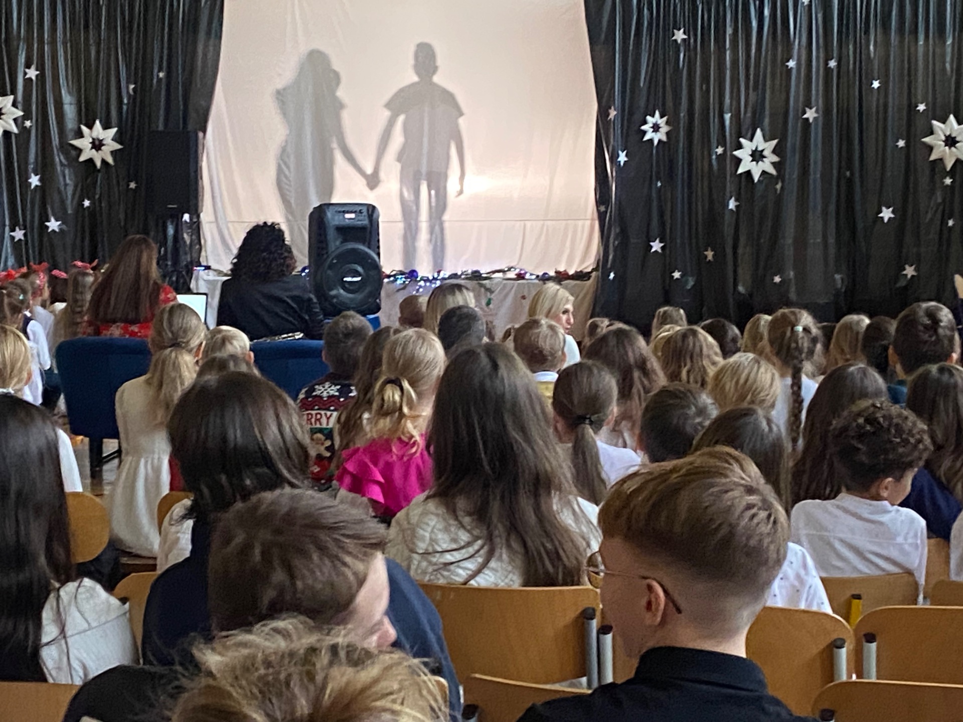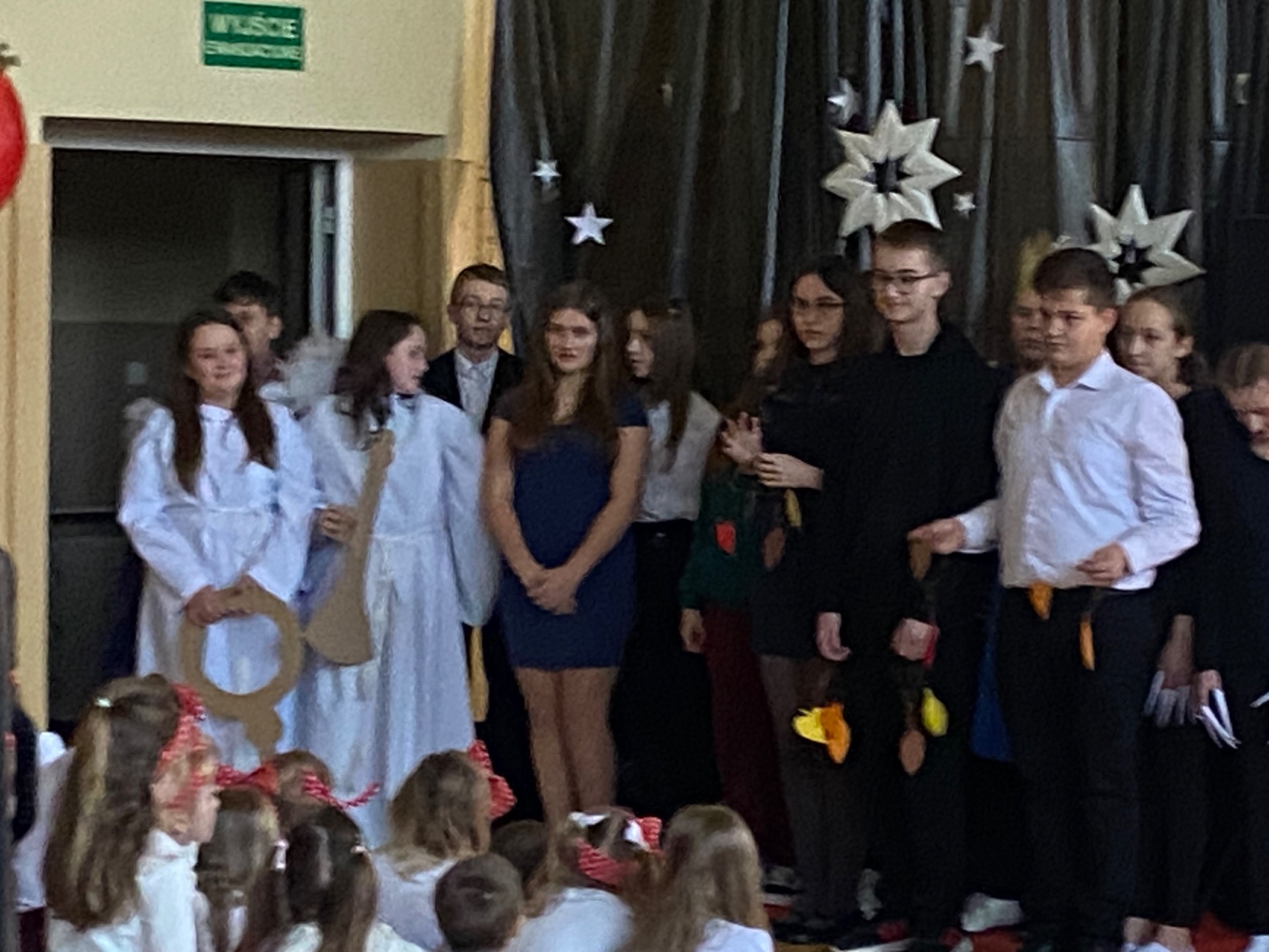 Szczególnym wydarzeniem były szkolne jasełka przedstawione przez uczniów klas 8 i 7 pod kierunkiem pani dyrektor Agnieszki Staszewskiej, nauczycielek Jolanty Niewczas, Pauliny Dobrosz oraz Patrycji Matysiak. Teatr cieni, piękna muzyka i wzruszające komentarze na długo pozostaną wszytkim w pamięci. Chór szkolny pod kierunkiem pani Dominiki Sobczyńskiej zaprezentował koncert kolęd i wprowadził nas wszystkich w świąteczny nastrój.