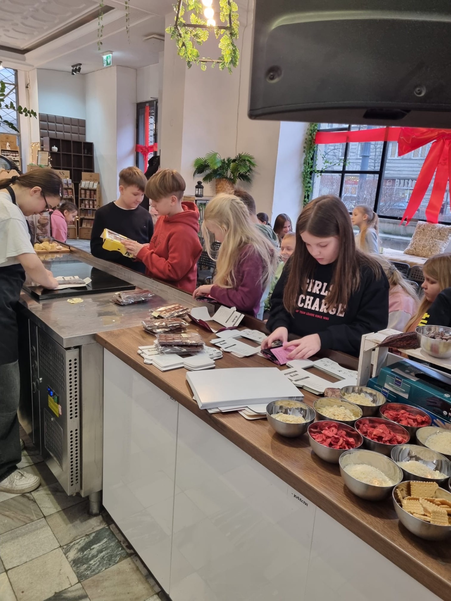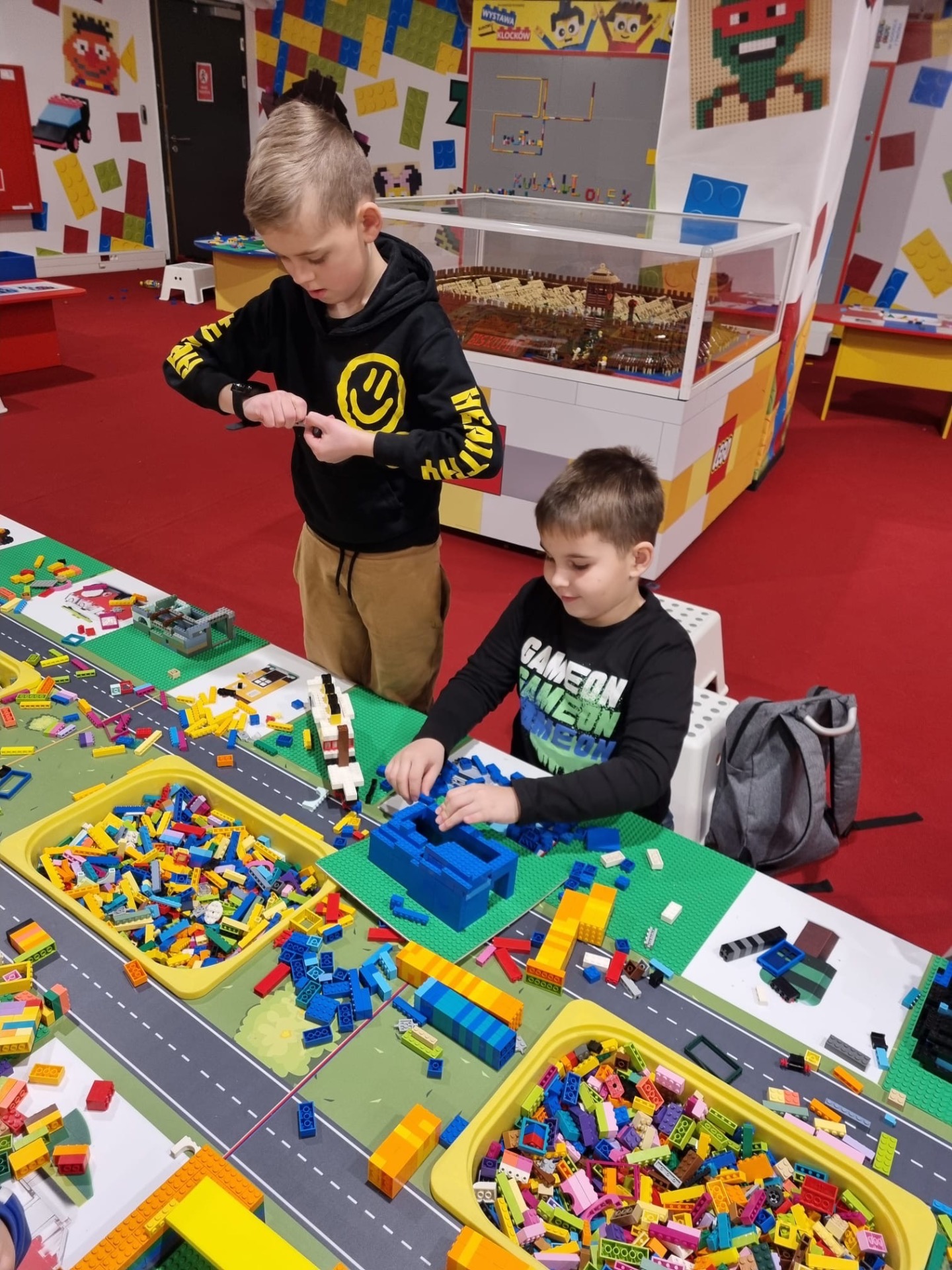 W piątek 10 stycznia 2025 r. uczniowie klasy II i III wyjechali na wycieczkę do Warszawy. Pierwszym punktem był udział w warsztatach czekolady, gdzie poznali cały proces jej powstawania. Podczas warsztatów uczniowie przygotowali swoją tabliczkę czekolady oraz degustowali czekoladę do picia. Na koniec każdy z uczniów otrzymał dyplom „ Młodszego Czeladnika‘’. Następnie udali się na Stadion Narodowy, gdzie obejrzeli największą w Europie Wystawę Budowli z 10 milionów klocków Lego. Dzieci były oczarowane repliką samochodu rajdowego mierzącą 4,2 metra długości, 3 metrową Statuą Wolności oraz figurami superbohaterów. Na koniec wszyscy wspaniale bawili się wśród tysięcy klocków Lego, gdzie tworzyli swoje własne budowle.