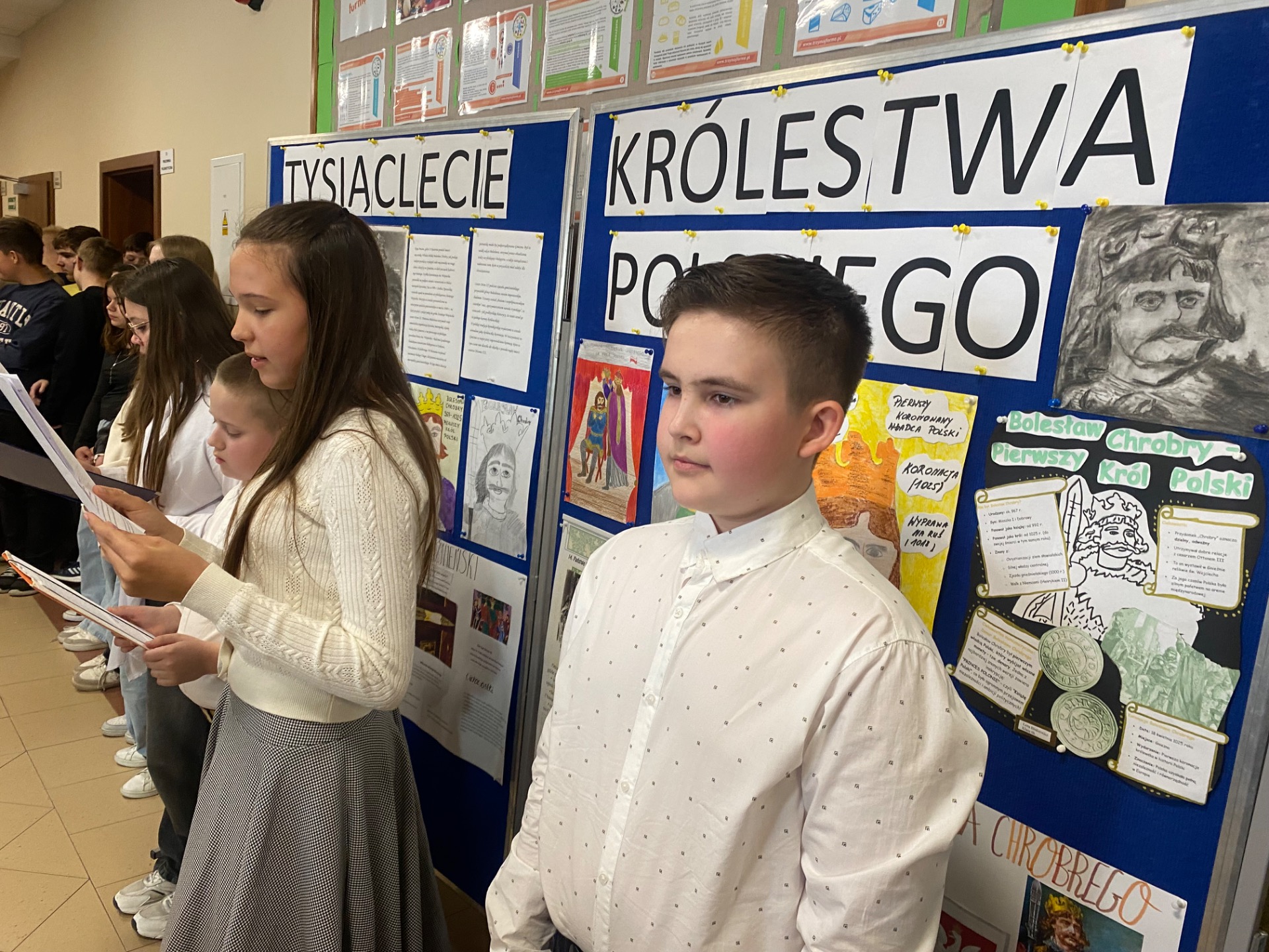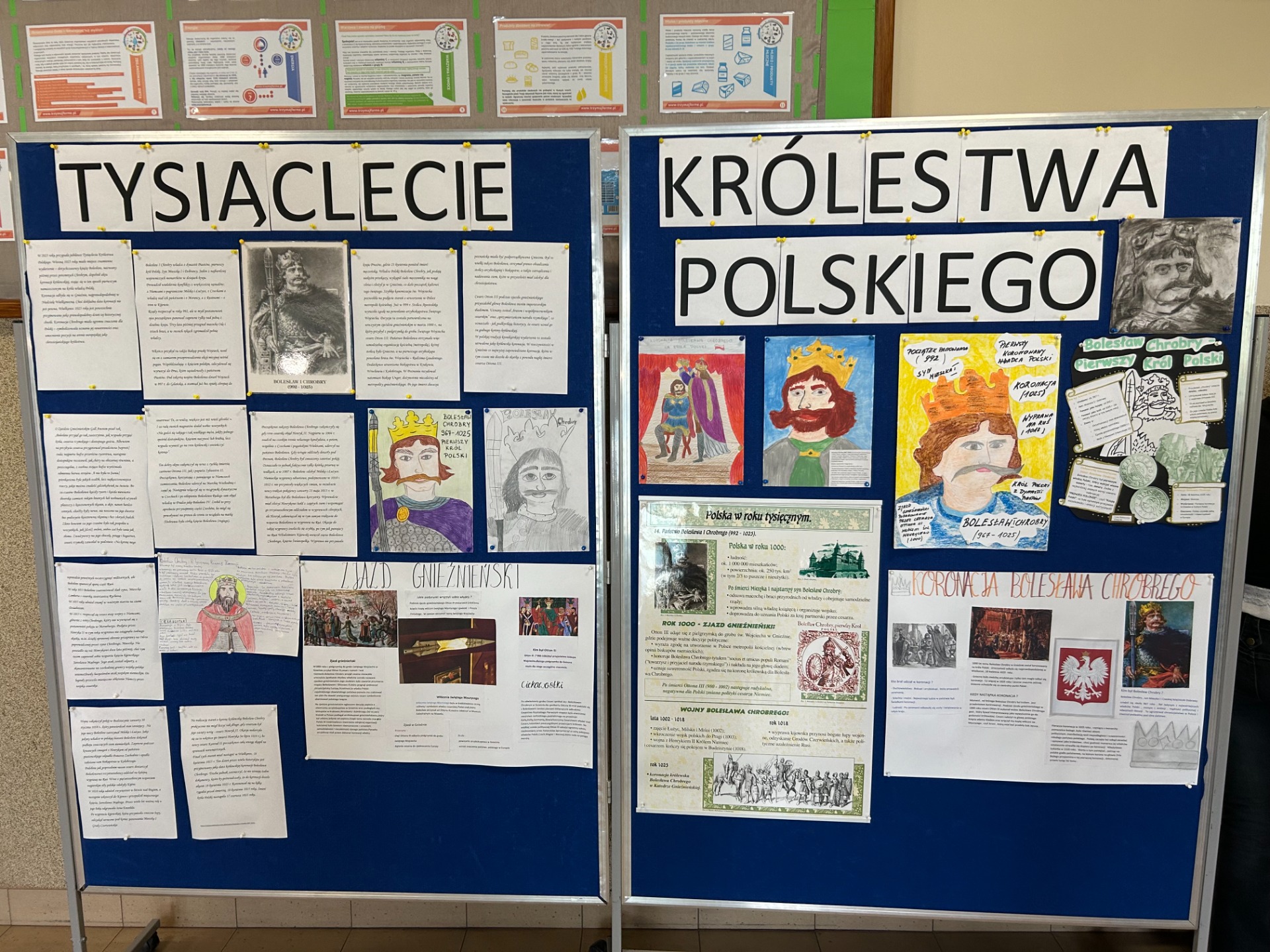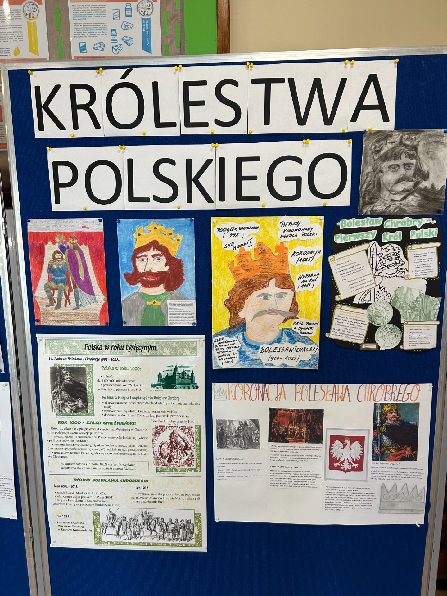 „Wiosną 1025 roku miało miejsce znamienne wydarzenie – dotychczasowy książę Bolesław, nazwany później przez potomnych Chrobrym, dopełnił aktu koronacji królewskiej, stając się w ten sposób pierwszym namaszczonym na króla władcą Polski. Koronacja odbyła się w Gnieźnie, najprawdopodobniej w Niedzielę Wielkanocną. Choć dokładna data koronacji nie jest pewna, Wielkanoc 1025 roku jest powszechnie przyjmowana jako prawdopodobny dzień tej historycznej chwili. Koronacja Chrobrego miała ogromne znaczenie dla Polski – symbolizowała uznanie jej suwerenności oraz umocnienie pozycji na arenie europejskiej jako chrześcijańskiego królestwa”. W 2025 roku przypada jubileusz Tysiąclecia Królestwa Polskiego, z tej okazji odbył się apel, upamiętniający wydarzenia sprzed tysiąca lat. Uczniowie koła historycznego przypomnieli biografię Bolesława Chrobrego, walki, które stoczył z innymi państwami w czasie swego panowania oraz wydarzenia zjazdu gnieźnieńskiego 1000 roku, które były zapowiedzią koronacji Chrobrego. Została przygotowana tablica na temat Tysiąclecia Królestwa Polskiego, na której pojawiły się prace naszych uczniów. W klasach IV-VIII na lekcjach historii zostały przeprowadzone zajęcia o Polsce za czasów Chrobrego, uczniowie obejrzeli film edukacyjny na ten temat.