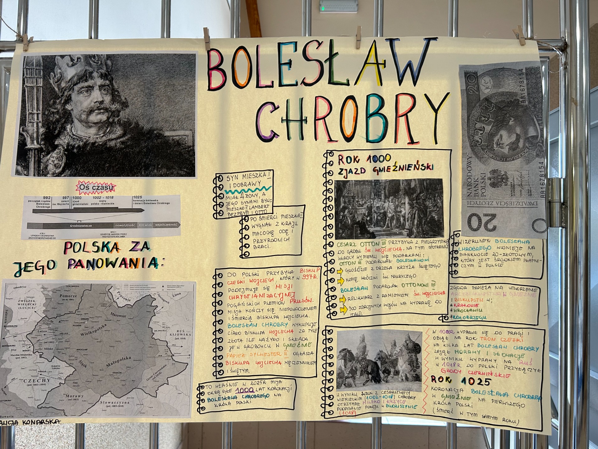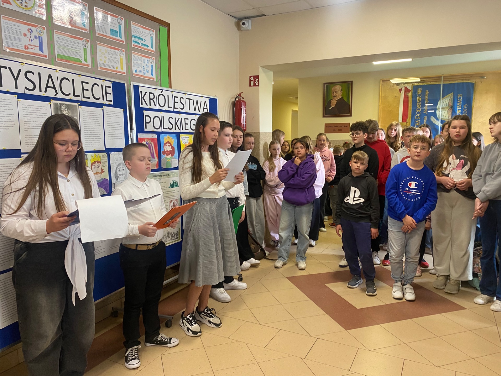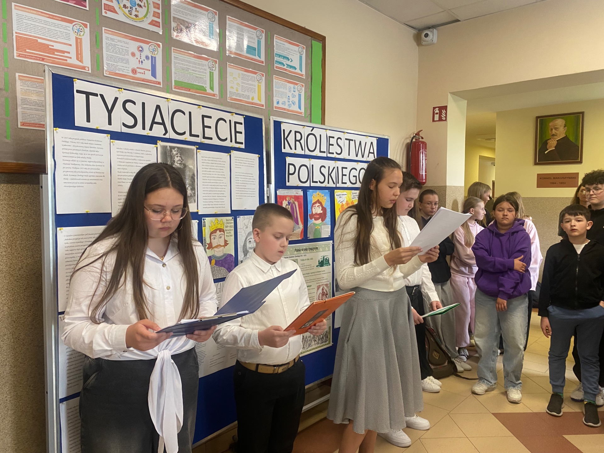„Wiosną 1025 roku miało miejsce znamienne wydarzenie – dotychczasowy książę Bolesław, nazwany później przez potomnych Chrobrym, dopełnił aktu koronacji królewskiej, stając się w ten sposób pierwszym namaszczonym na króla władcą Polski. Koronacja odbyła się w Gnieźnie, najprawdopodobniej w Niedzielę Wielkanocną. Choć dokładna data koronacji nie jest pewna, Wielkanoc 1025 roku jest powszechnie przyjmowana jako prawdopodobny dzień tej historycznej chwili. Koronacja Chrobrego miała ogromne znaczenie dla Polski – symbolizowała uznanie jej suwerenności oraz umocnienie pozycji na arenie europejskiej jako chrześcijańskiego królestwa”. W 2025 roku przypada jubileusz Tysiąclecia Królestwa Polskiego, z tej okazji odbył się apel, upamiętniający wydarzenia sprzed tysiąca lat. Uczniowie koła historycznego przypomnieli biografię Bolesława Chrobrego, walki, które stoczył z innymi państwami w czasie swego panowania oraz wydarzenia zjazdu gnieźnieńskiego 1000 roku, które były zapowiedzią koronacji Chrobrego. Została przygotowana tablica na temat Tysiąclecia Królestwa Polskiego, na której pojawiły się prace naszych uczniów. W klasach IV-VIII na lekcjach historii zostały przeprowadzone zajęcia o Polsce za czasów Chrobrego, uczniowie obejrzeli film edukacyjny na ten temat.
