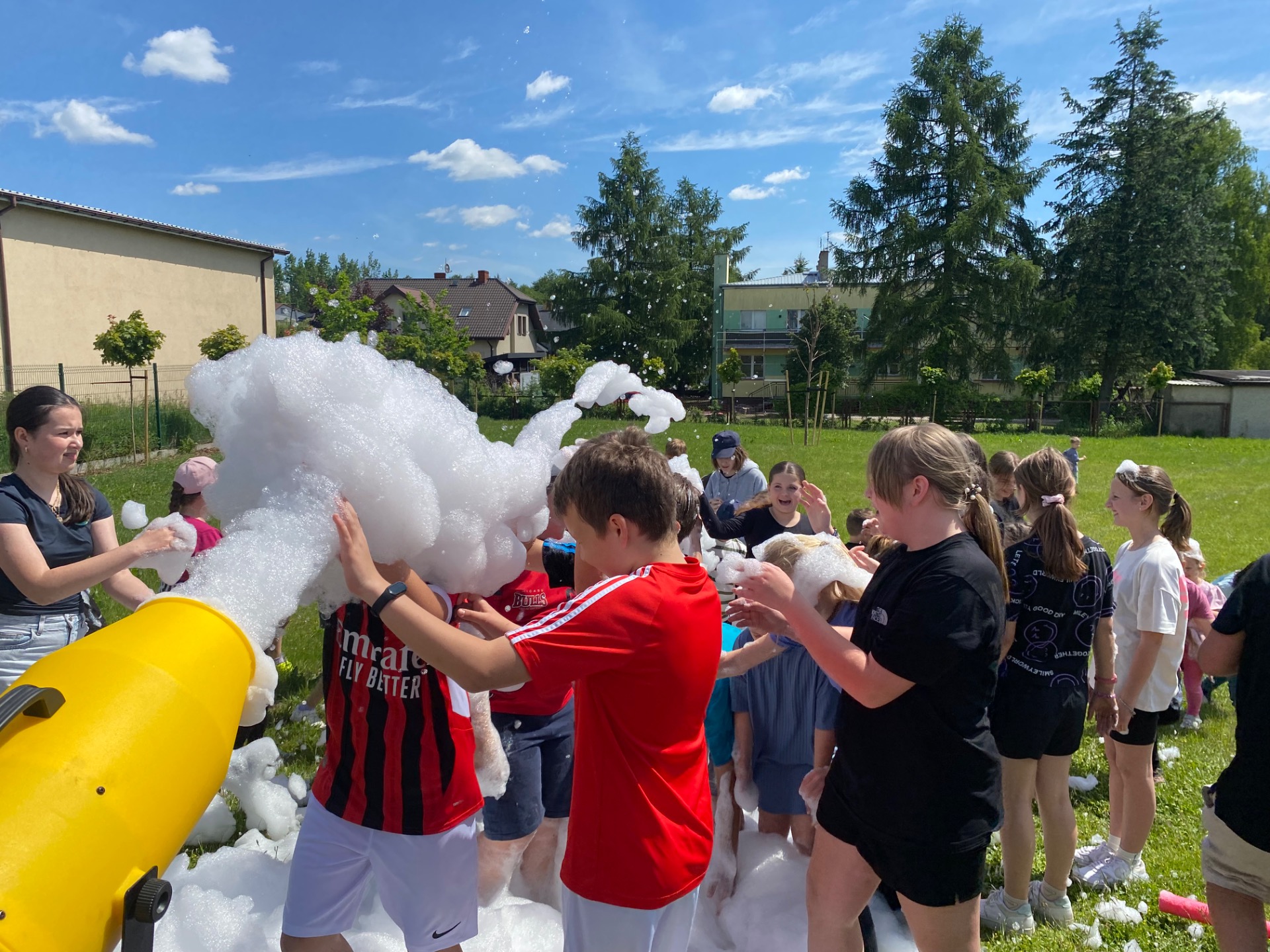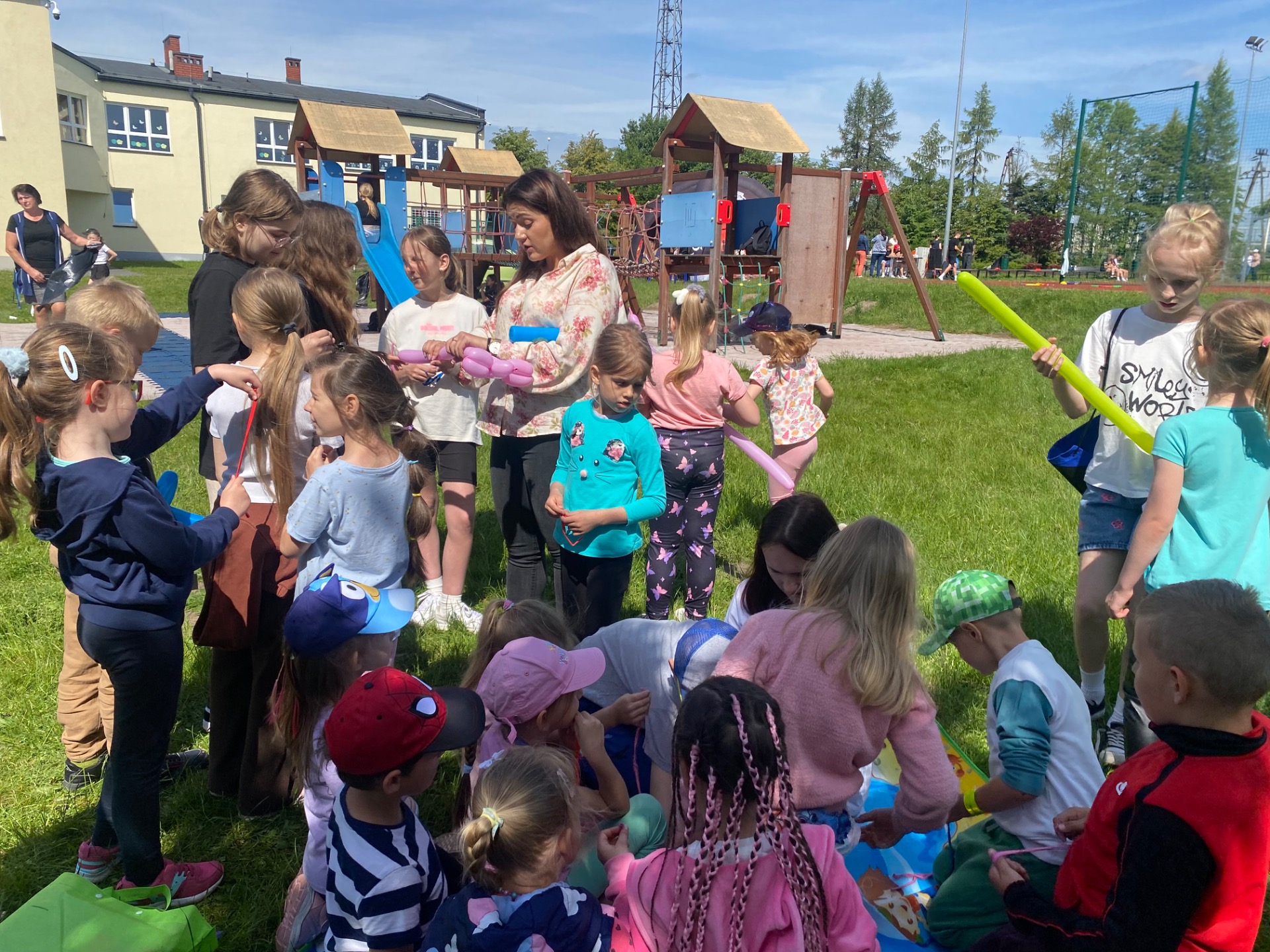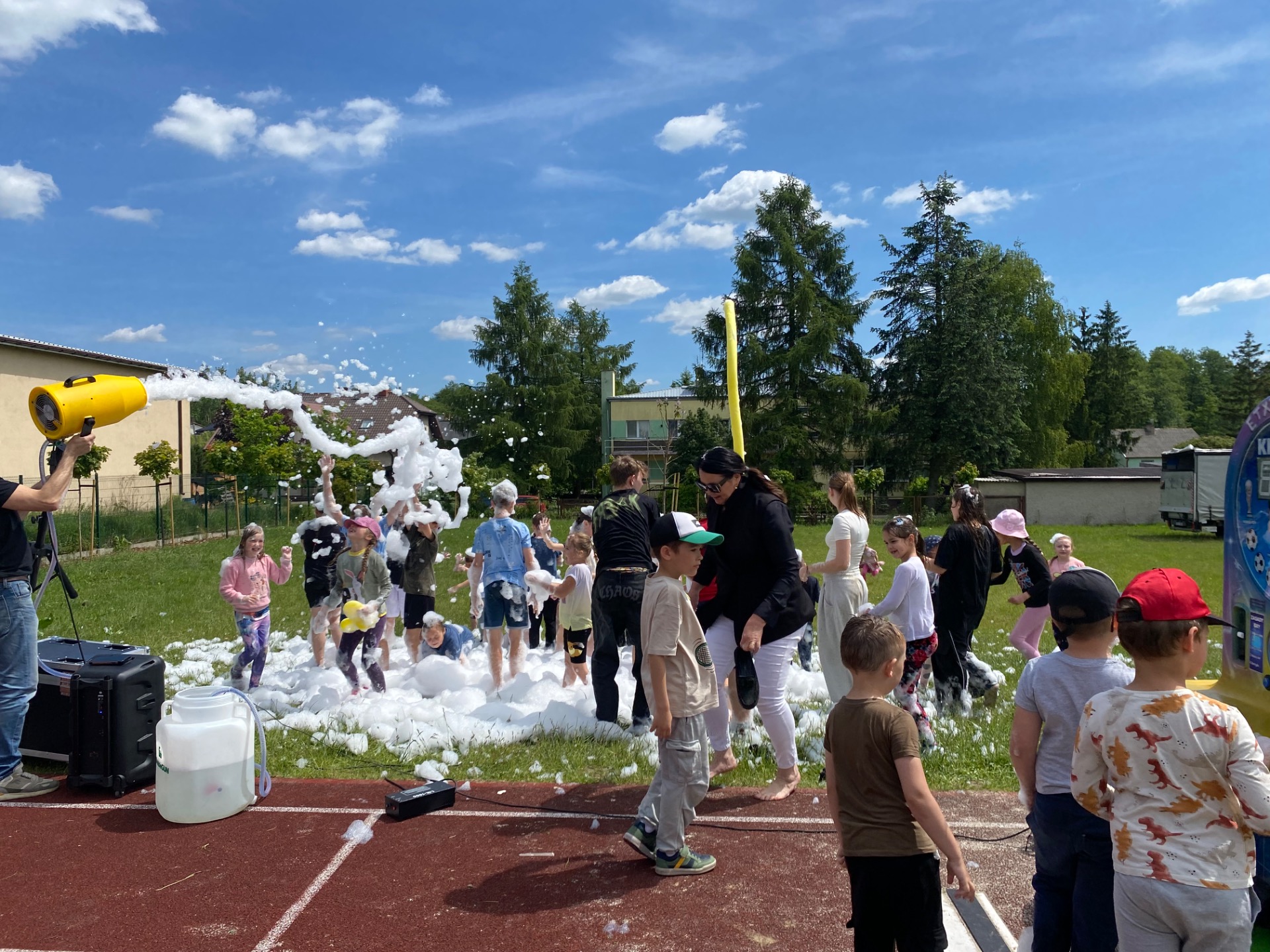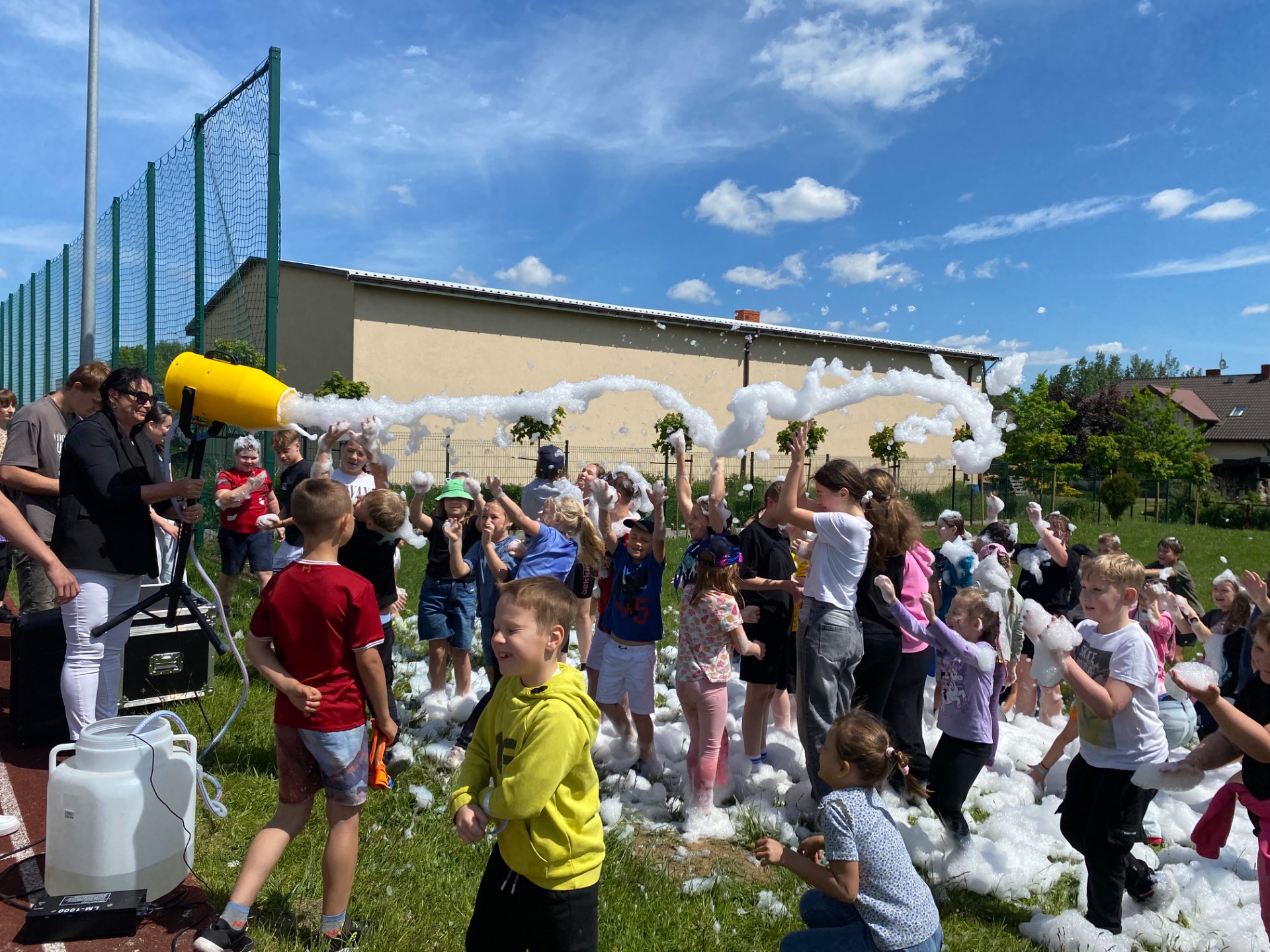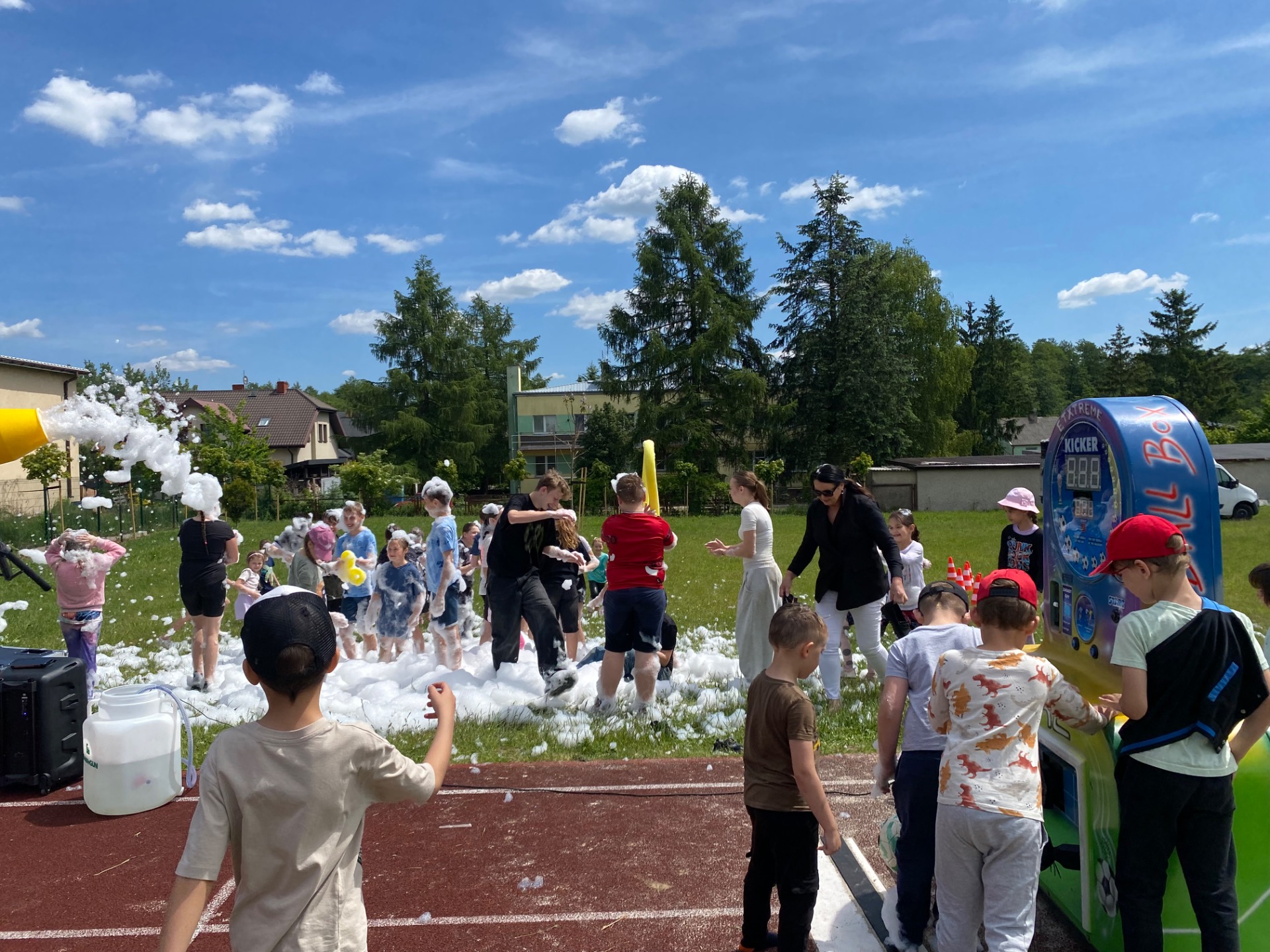 Pierwszy czerwca to wyjątkowy dzień dla wszystkich dzieci. Nie mogło być inaczej w naszej szkole, dlatego 30 maja odbył się z tej okazji niezapomniany, wesoły dzień. Pani Dyrektor Agnieszka Staszewska podczas porannego apelu złożyła wszystkim uczniom życzenia i zaprosiła do wspólnej zabawy. W tym dniu Rada Rodziców zatroszczyła się o wiele niespodzianek dla dzieci. Największą atrakcją imprezy okazało się Piona-party. Dzieci miały również możliwość zapoznania się z pracą strażaka i policjanta. Odbył się turniej piłki nożnej, była zabawa w kręgle, tor przeszkód, stoisko szachowe, kopacz – siła twoich nóg oraz odwiedziła nas grupa „Topory” z grami edukacyjnymi. Cały dzień osłodził nam pyszny poczęstunek przygotowany przez rodziców. Za ten niesamowity dzień dziękujemy również wszystkim sponsorom i zapraszamy do obejrzenia fotorelacji.
