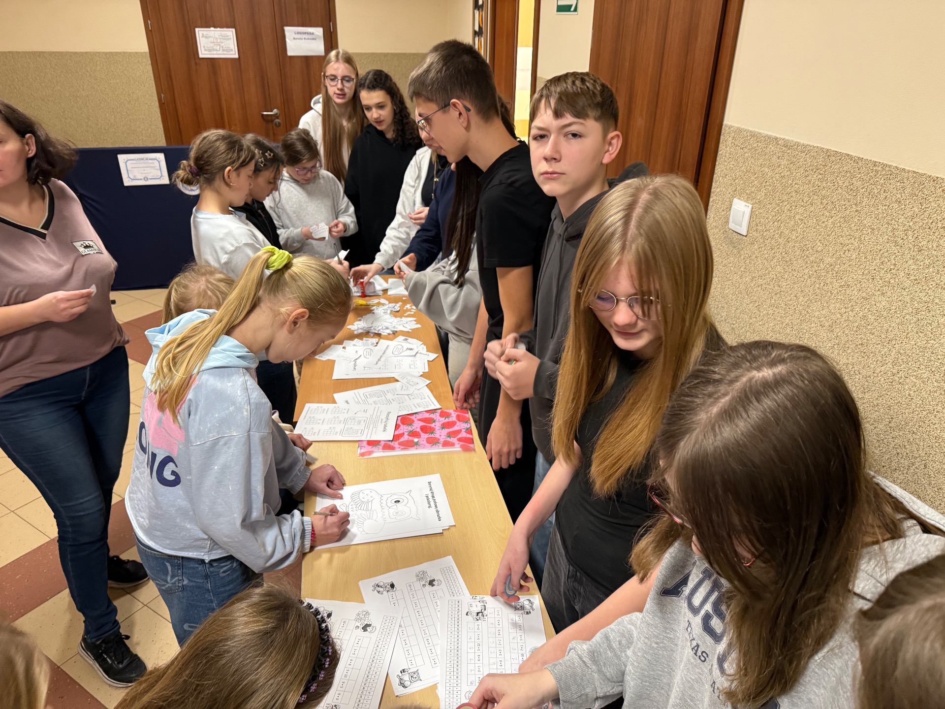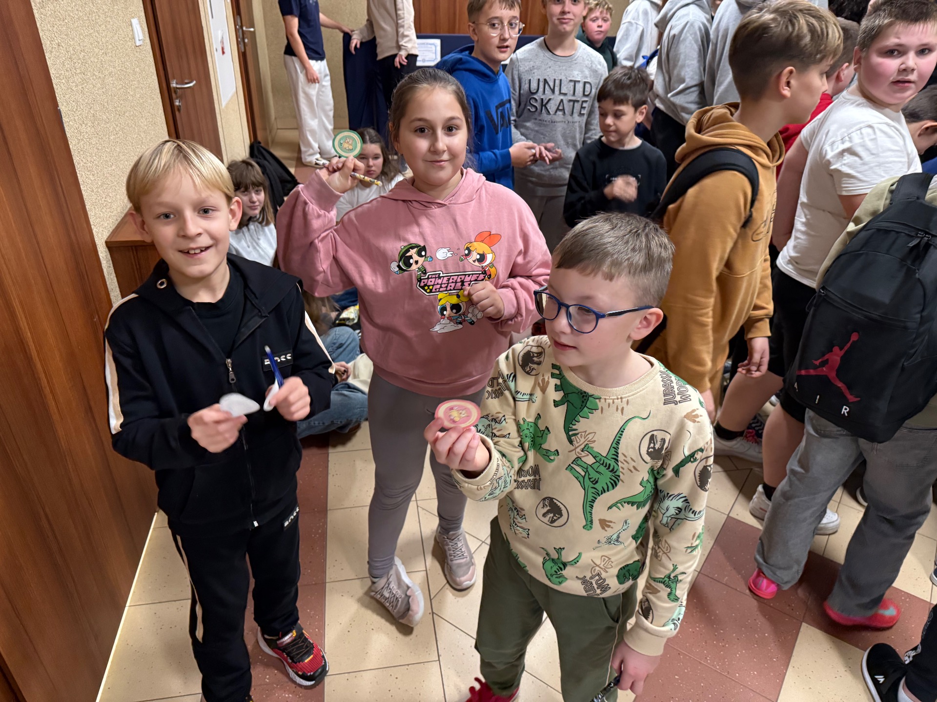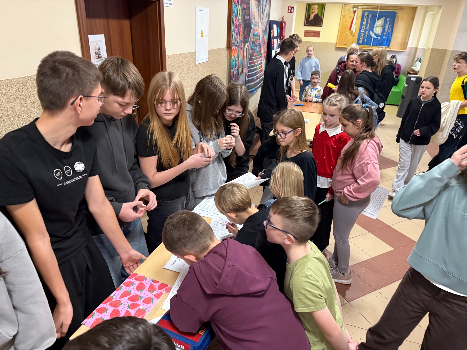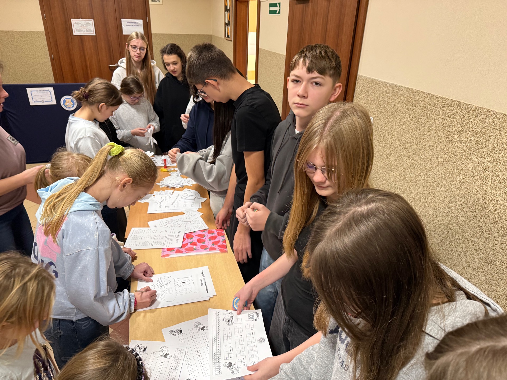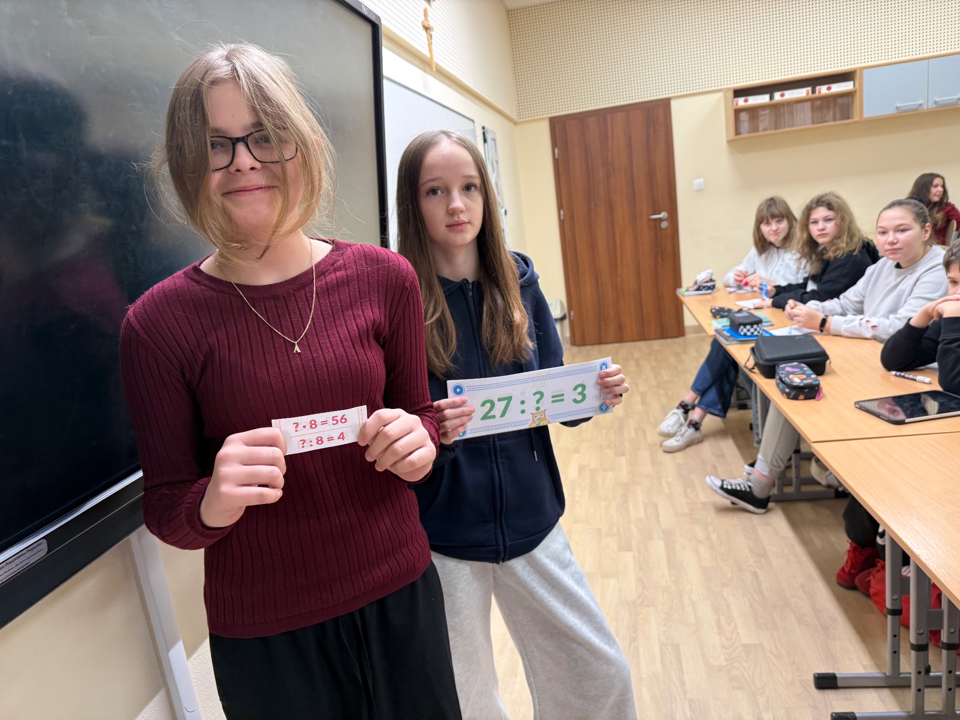 W dniu 21 listopada obchodziliśmy w naszej szkole XV ŚWIATOWY DZIEŃ TABLICZKI MNOŻENIA. Celem akcji było propagowanie zabawowej formy uczenia się matematyki. Miała ona zachęcić do przypomnienia sobie tabliczki mnożenia w przyjemny sposób. W tym roku szkolnymi egzaminatorami byli uczniowie klasy VIII. Podczas patroli w czasie przerw sprawdzali znajomość tabliczki mnożenia wśród uczniów, a także nauczycieli. Każdy kto zdał egzamin otrzymał Certyfikat Mistrza Tabliczki Mnożenia. Jak co roku akcja przebiegała w miłej atmosferze, urozmaicona piosenkami matematycznymi. Gratulujemy Mistrzom oraz dziękujemy wszystkim uczestnikom.