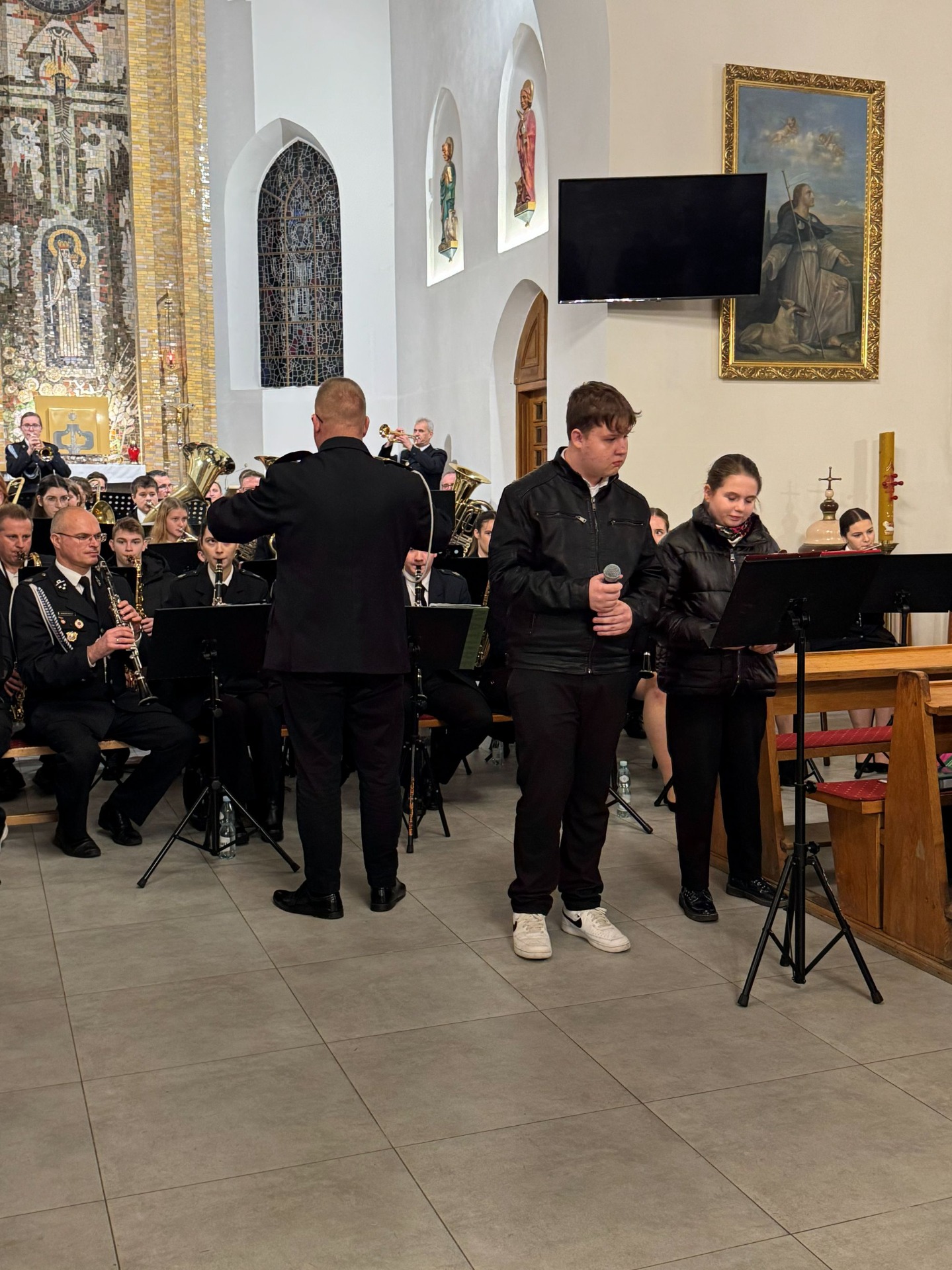 Dnia 9 listopada 2025 roku uczniowie: Antonina Bednarek, Amelia Okrasa, Alicja Cybulska, Maria Słowikowska i Wojciech Brzeziński reprezentowali naszą szkołę podczas koncertu pieśni patriotycznych pt.: "Dźwięki wolności" w kościele pw. Świętej Trójcy w Cielądzu.