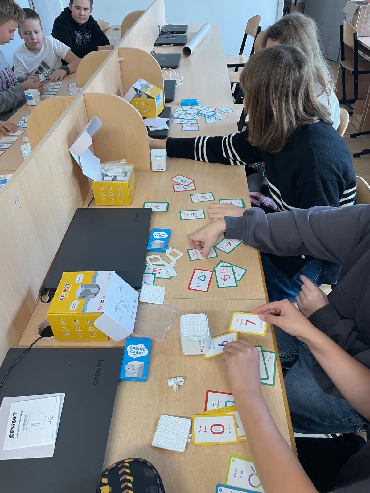 W dniach 20-24 w klasach 1-6 odbyły się zajęcia z kodowania, których celem było rozwijanie umiejętności logicznego myślenia, kreatywności oraz podstaw programowania. Młodsi uczniowie rozwiązywali zadania „kodując na dywanie”, również chętnie podejmowali trudniejsze zadania. Wykonywali ćwiczenia polegające na układaniu prostych sekwencji i poleceń dla Genibota za pomocą kart jak i aplikacji. Sterowali robotem na macie do kodowania, na kartce papieru, na podłodze, samodzielnie jak i zespołowo. Była to świetna zabawa rozwijająca logiczne myślenie, myślenie algorytmiczne. Uczestnicy rozwijali umiejętności współpracy, kreatywności i rozwiązywania problemów.