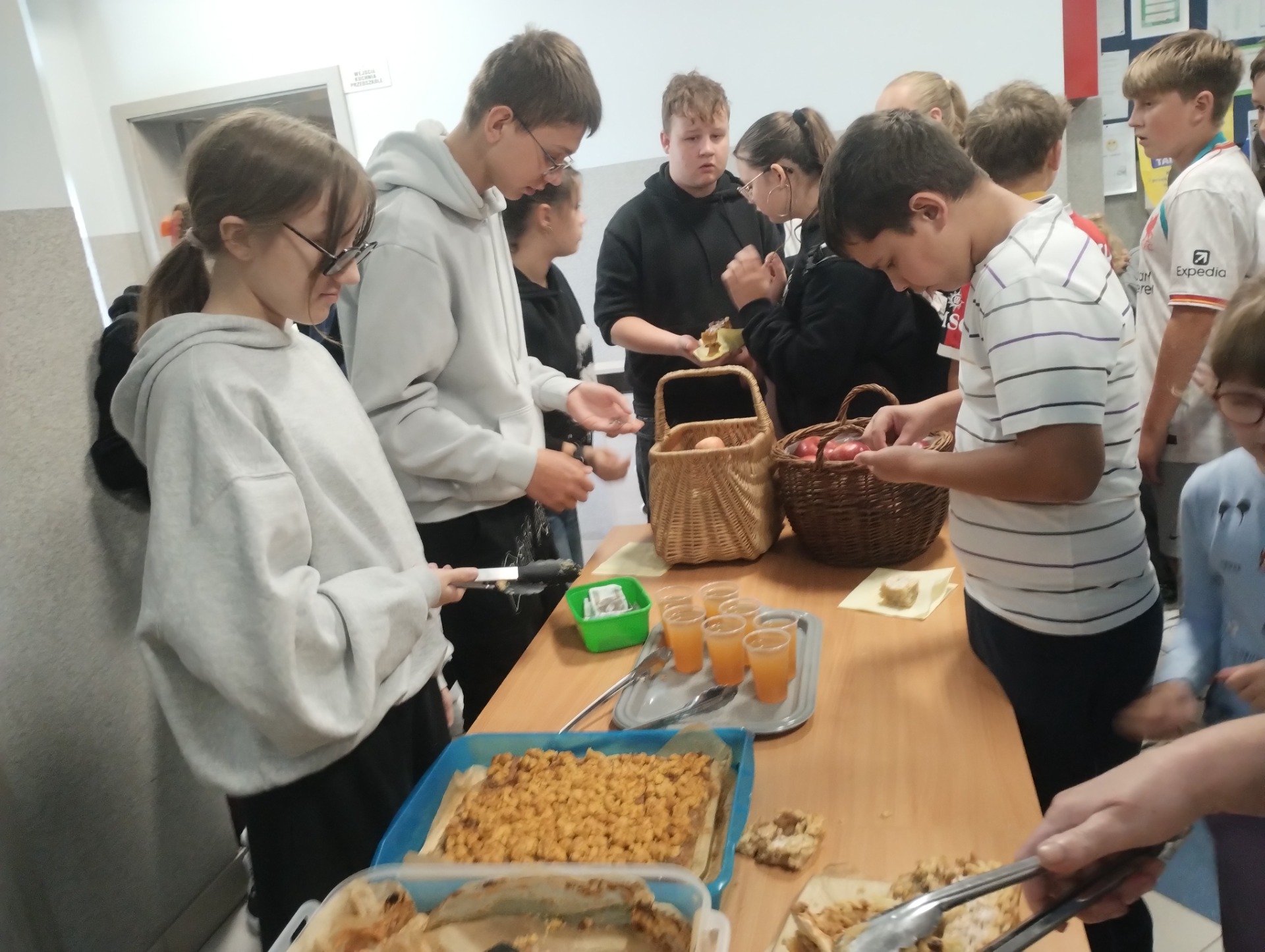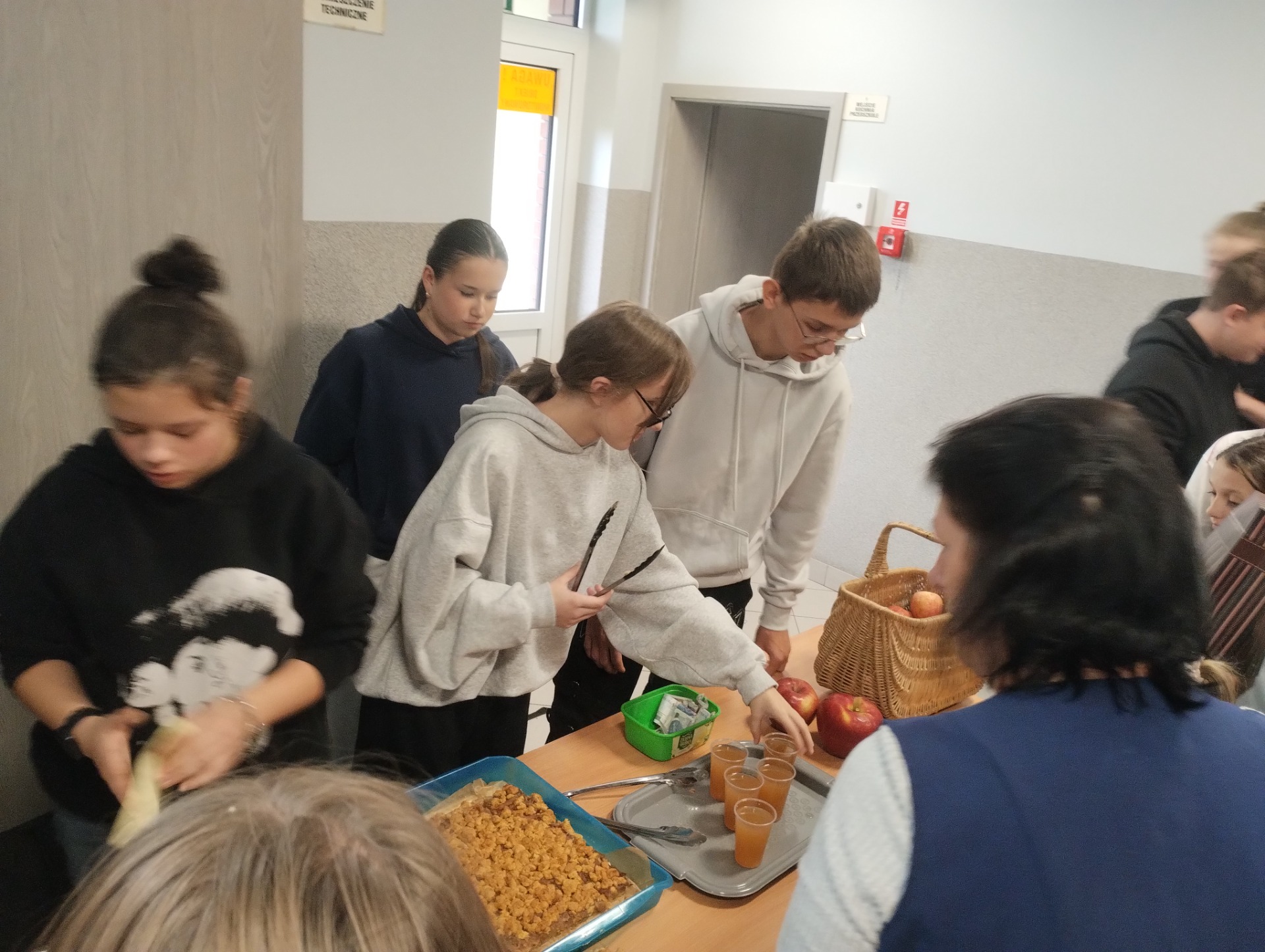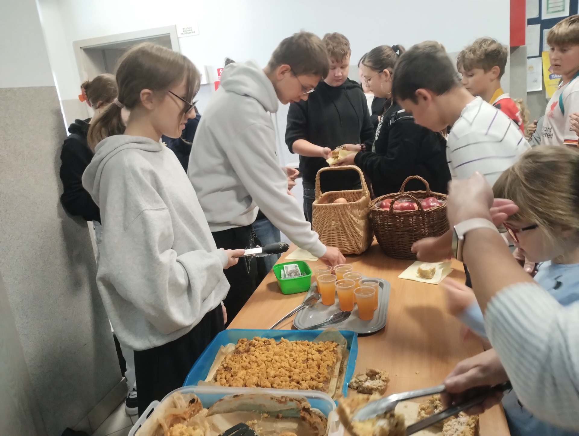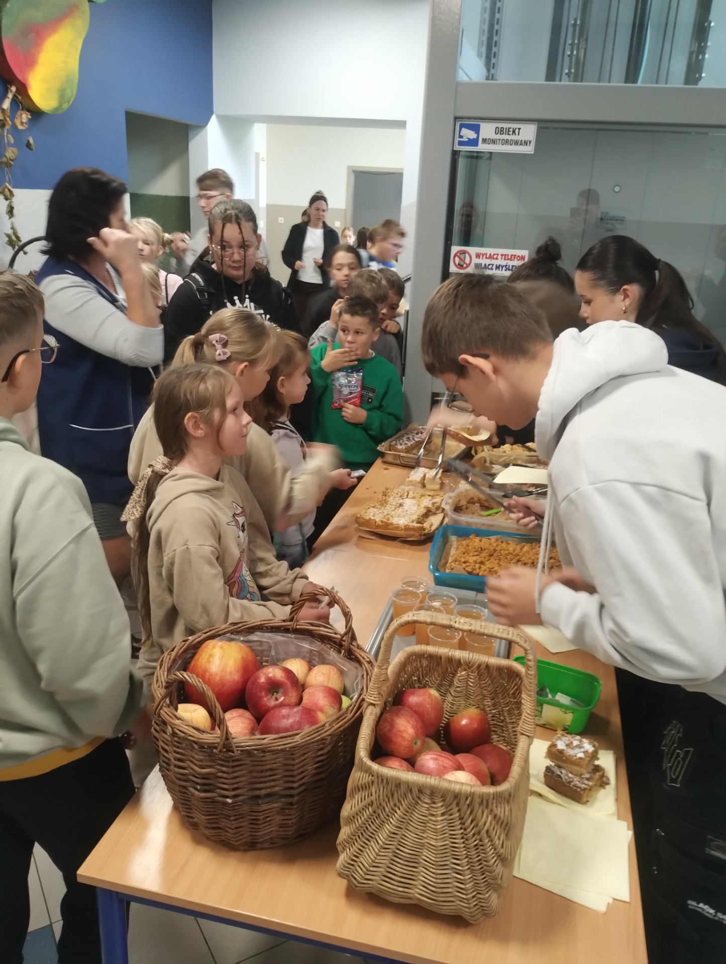 1 października w naszej szkole świętowany był Dzień Jabłka. Uczniowie przygotowali dla swoich kolegów i koleżanek zdrowy poczęstunek w postaci soczystych jabłek, które były wystawione w specjalnych koszach. Szkolne Koło Wolontariatu wraz z uczniami klasy ósmej sprzedawało własnoręcznie upieczone szarlotki oraz sok jabłkowy. Zarówno jabłka jak i ciasto cieszyły się sporym zainteresowaniem i szybko stoisko świeciło pustkami. Uczniowie doskonale zdają sobie sprawę z korzyści płynących ze spożywania owoców i warzyw w codziennej diecie, co potwierdzili wybierając zdrowe jabłka na swoje drugie śniadanie.