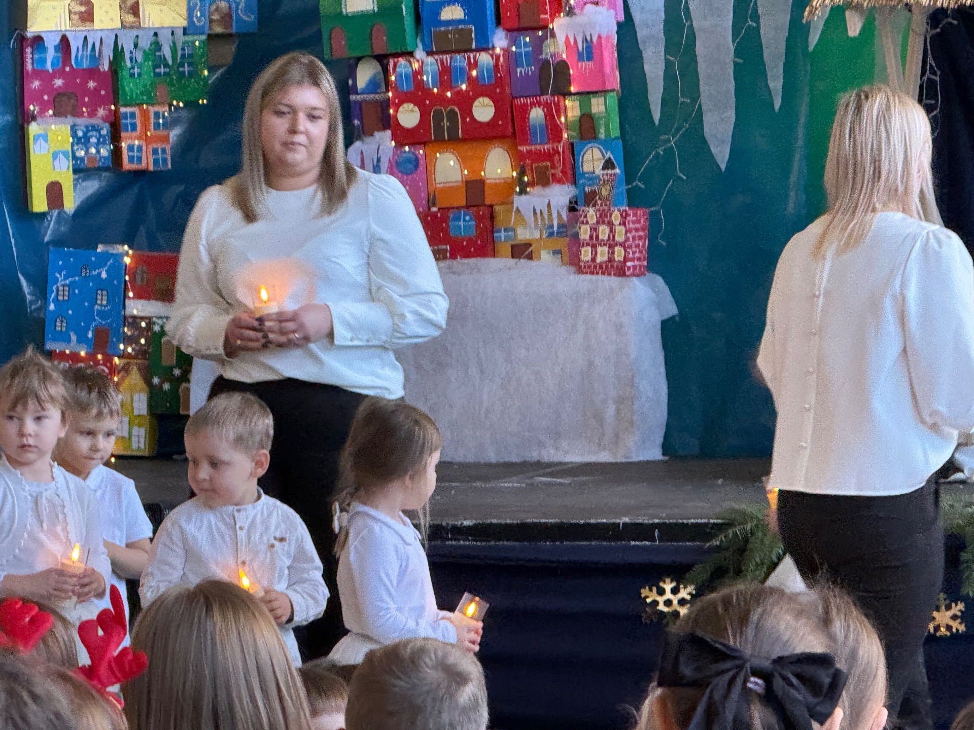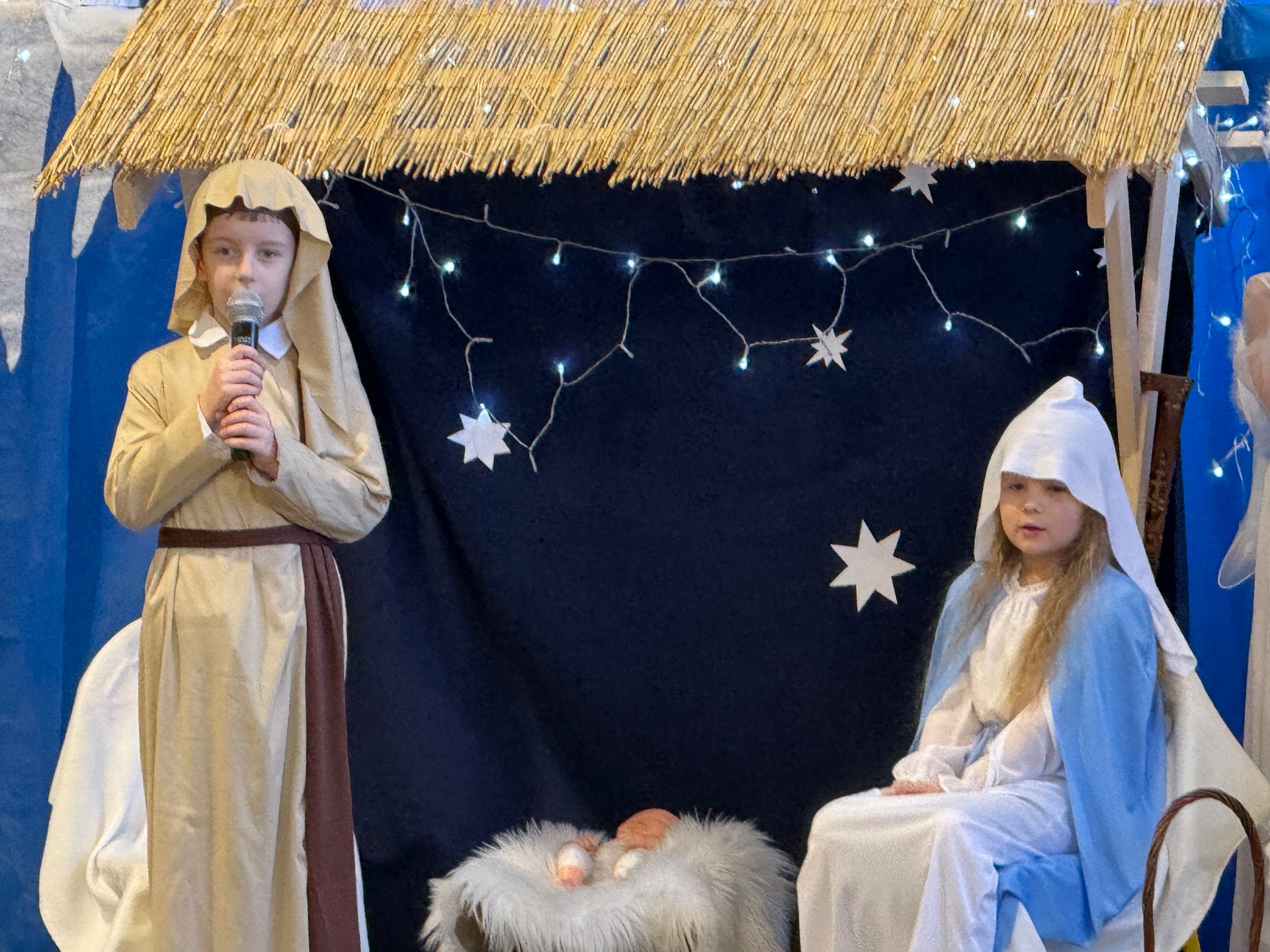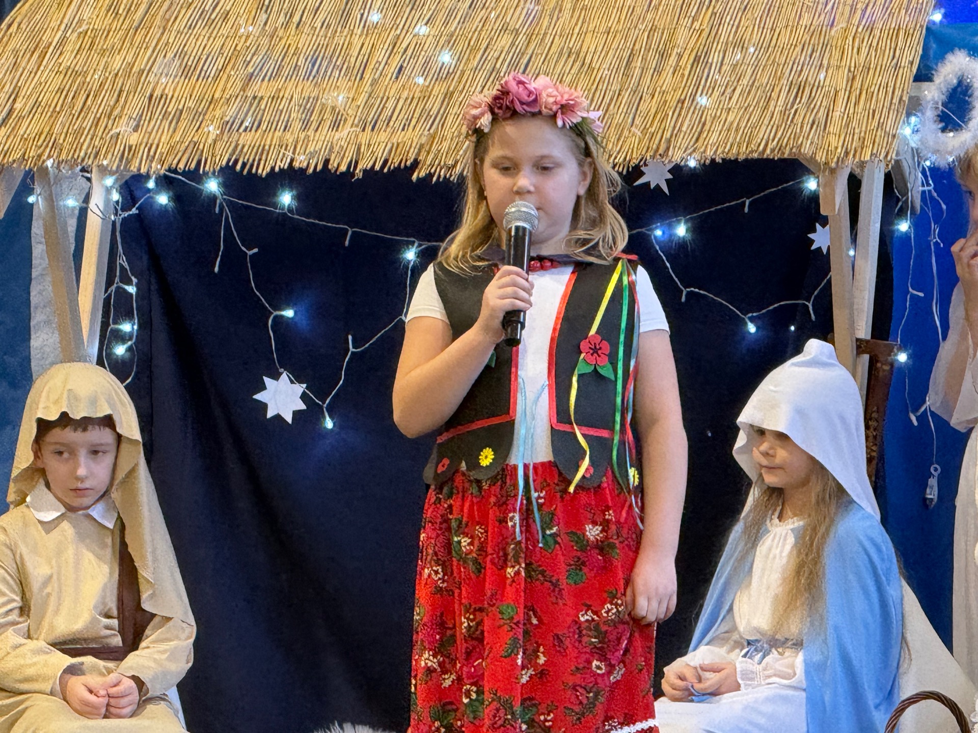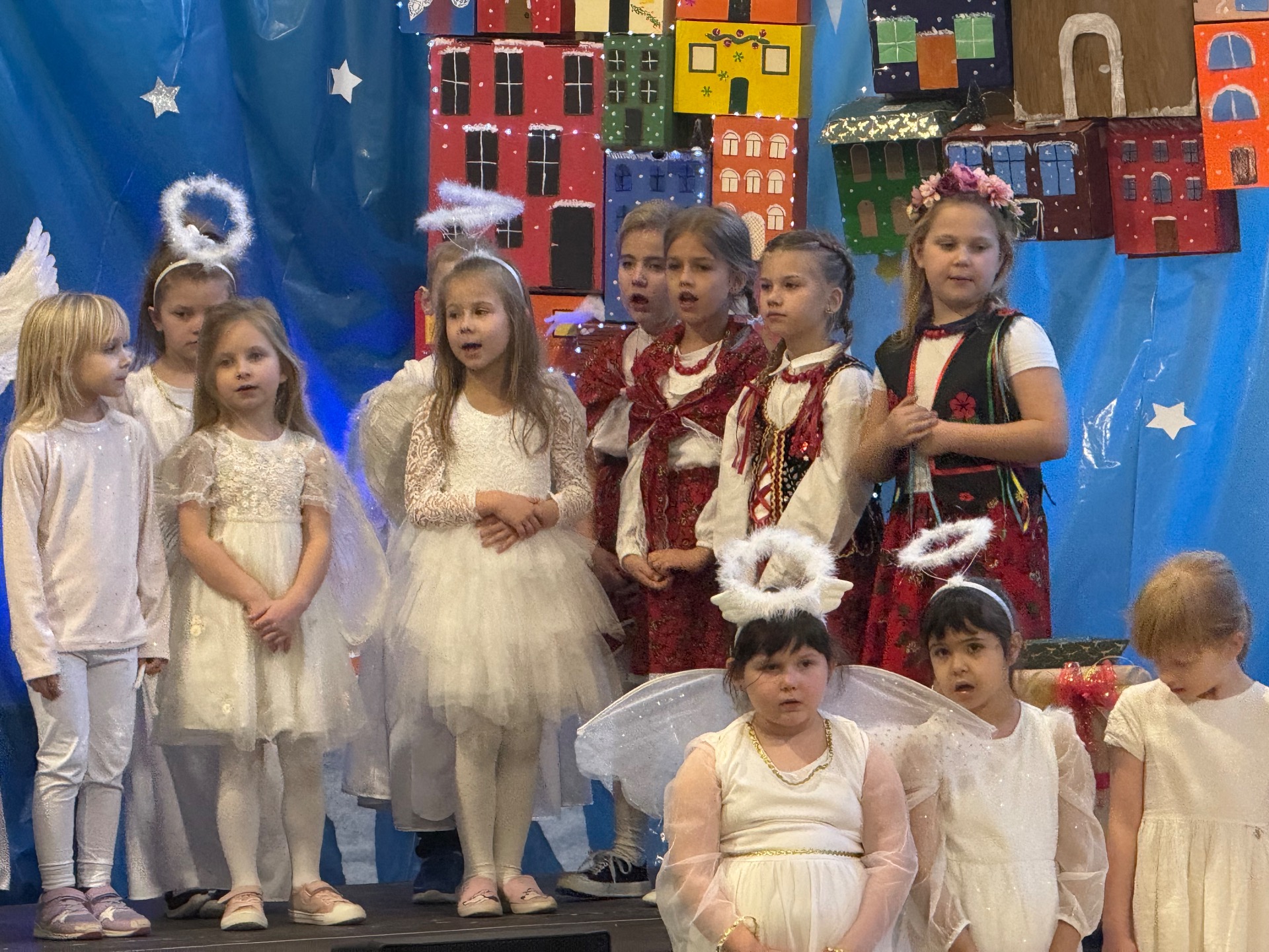 17 grudnia już od rana wszystkie klasy świętowały nadchodzące Boże Narodzenie. Świąteczna atmosfera zapanowała w całej szkole. Z sal wydobywały się dźwięki pięknych kolęd i pastorałek. Cała społeczność szkolna spotkała się w sali gimnastycznej, aby obejrzeć JASEŁKA w wykonaniu przedszkolaków, uczniów klas 0a, 0b, 1a. Do wspólnego kolędowania włączyli się uczniowie, nauczyciele, rodzice i zaproszeni goście. Artyści wprowadzili nas w świąteczny nastrój, salę zaś zdobiła piękna dekoracja. Publiczność po raz kolejny mogła przeżyć historię Marii i Józefa. Scenki z życia nowonarodzonego dzieciątka, pasterzy, mędrców, dzieci oraz aniołów przeplatane były kolędami i pastorałkami.