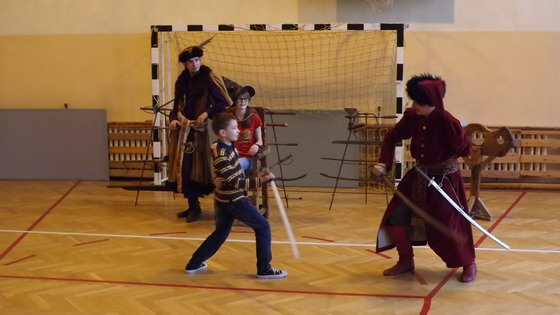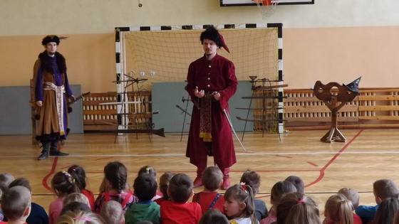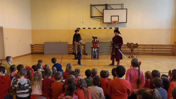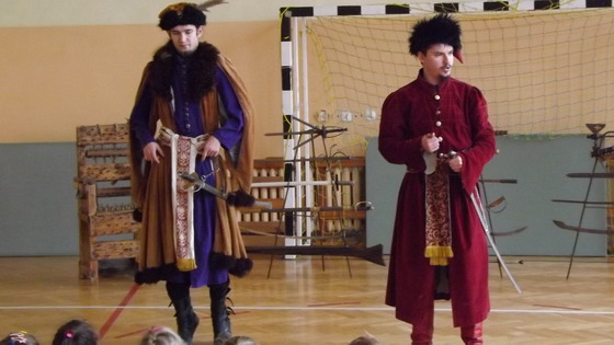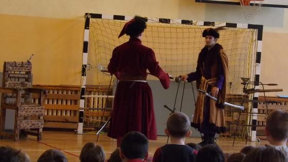 14 lutego 2014r. w naszej szkole odbyła się niezwykła lekcja historii prowadzona przez grupę artystyczną „Rekonstrukto”. Było to niezwykłe przedstawienie przybliżające nam szlacheckie obyczaje, sarmackie historie, a nawet procesy czarownic. Zaprezentowano nam na przykładzie szlachcica Ksawerego, tradycyjny strój sarmaty oraz obyczaje epoki szlacheckiej. Najciekawszym i budzącym najwięcej emocji punktem programu był pokaz metod walki, pojedynki na szable i rapiery. Po pożegnaniu każdy z uczniów mógł obejrzeć i potrzymać rekwizyty i stroje z przeszłości . Wszystkim taka nietypowa lekcja bardzo się podobała.