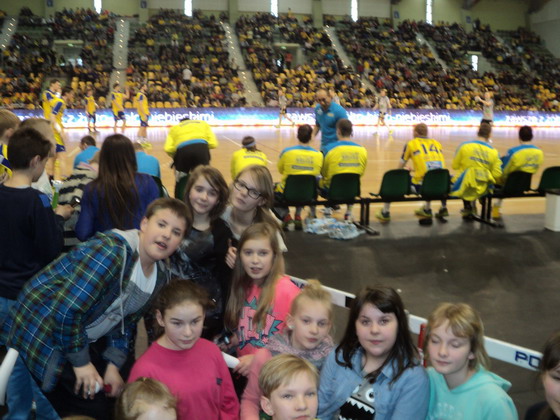 W dniu 15 marca trzydziestoosobowa grupa dzieci z klas IV-VI udała się na wycieczkę, na mecz piłki ręcznej do Kielc. Pod opieką p. Doroty Wacławek, p. Ireny Stańczak oraz p. Witolda Szczepańskiego młodzież oglądała mecz piłki ręcznej pomiędzy Vive Targi Kielce i MMTS Kwidzyń. Uczniowie mieli okazję zapoznać się z atmosferą wielkiego widowiska sportowego oraz spotkać reprezentantów Polski w piłkę ręczną m.in. Karola Bieleckiego, Bartosza Jureckiego. Wytrwale kibicowali swoim faworytom z Kielc. Zobaczcie sami!