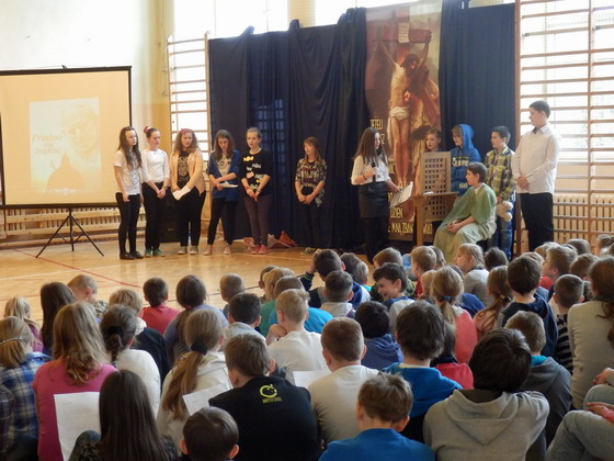 Dnia 16 kwietnia 2014 roku w naszej szkole odbył się uroczysty apel poświęcony Świętom Wielkanocnym. Akademia przybliżyła uczniom naszej szkoły historię i tradycje obchodów Świąt Wielkiej Nocy. Występujący na scenie uczniowie klasy VI pod kierunkiem pani Ireny Stańczak przedstawili refleksyjny montaż słowno-muzyczny wprowadzając wszystkich zgromadzonych w Triduum Paschalne i czas Świąt Wielkanocnych.